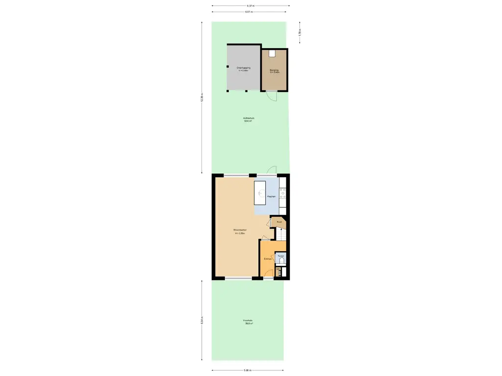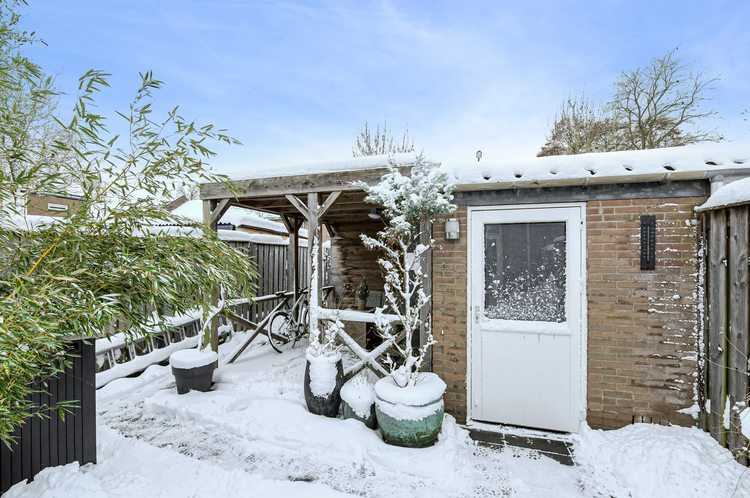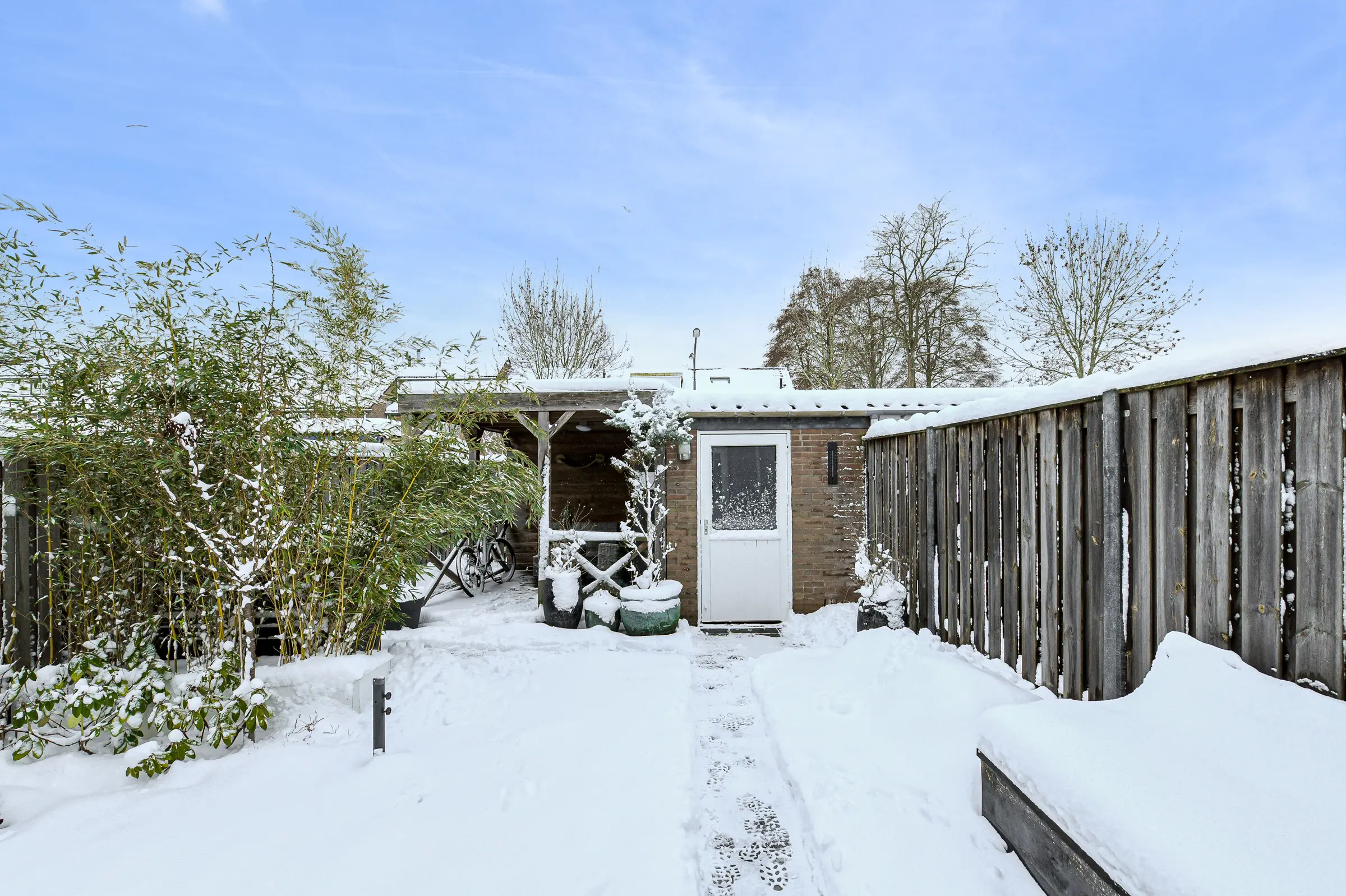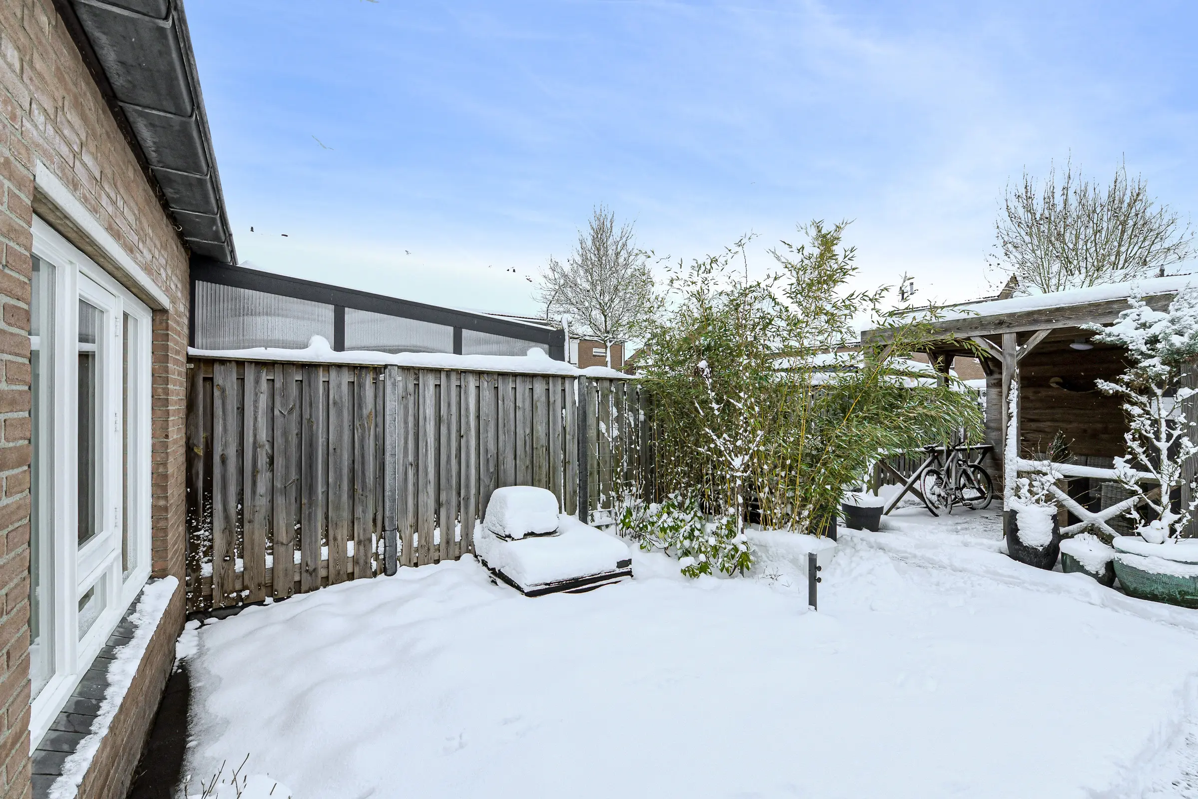 De woning heeft een prachtige tuin aan de achterzijde, georiënteerd op het zuiden. De totale oppervlakte van de tuin is 72m². De tuin is grotendeels voorzien van bestrating van grote beton tegels, borders met vaste beplanting en een berging aan de achterzijde met een fraaie overkapping. De erfafscheiding is van hout.