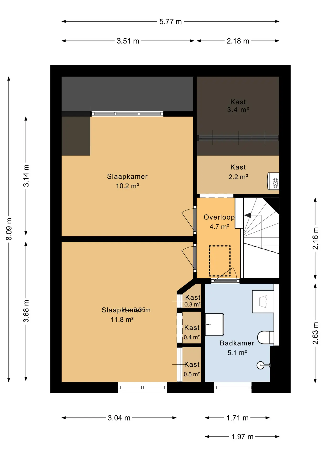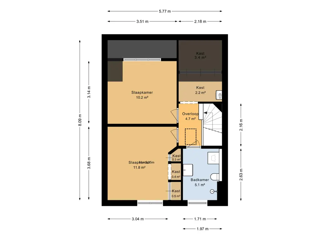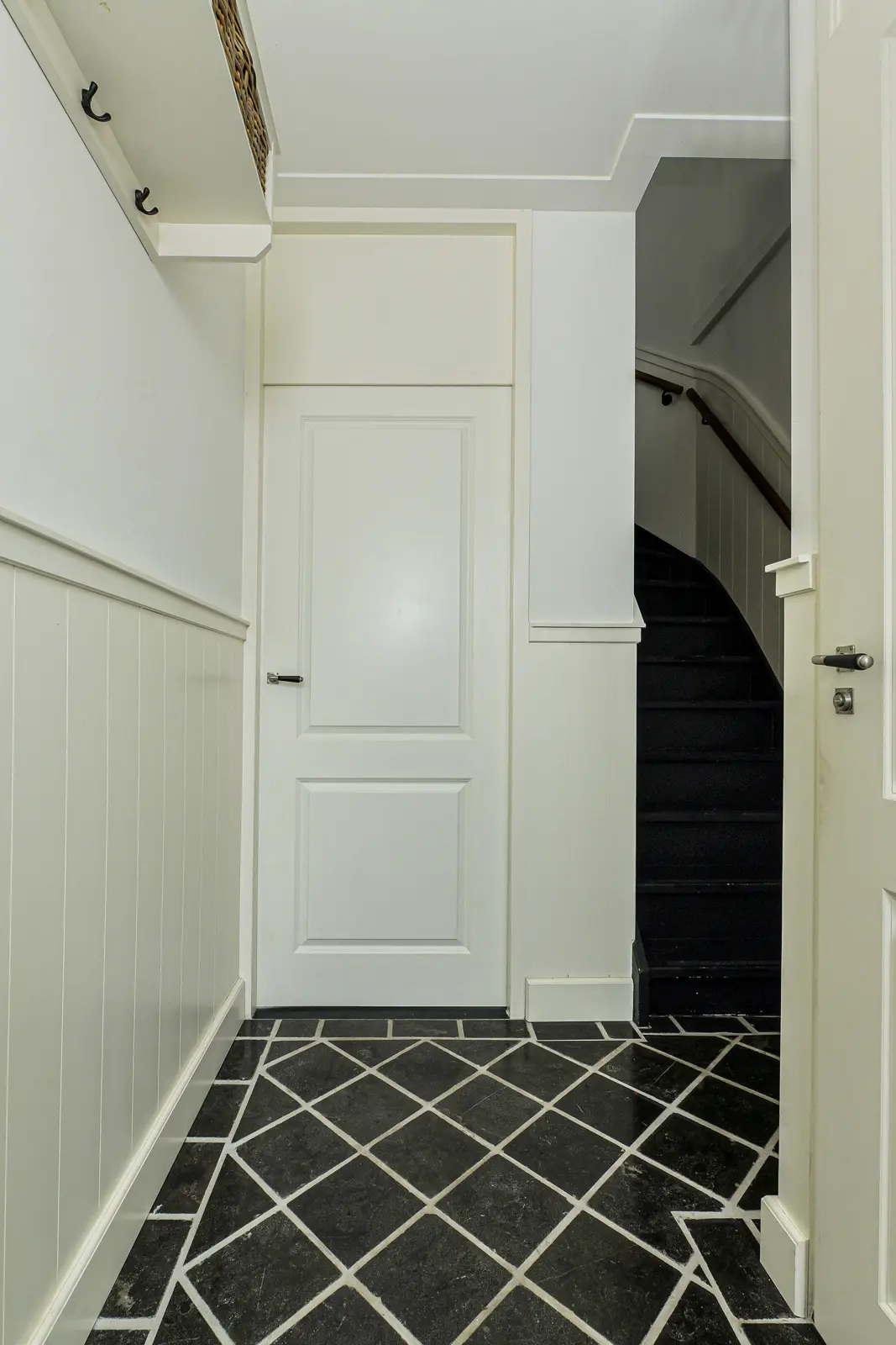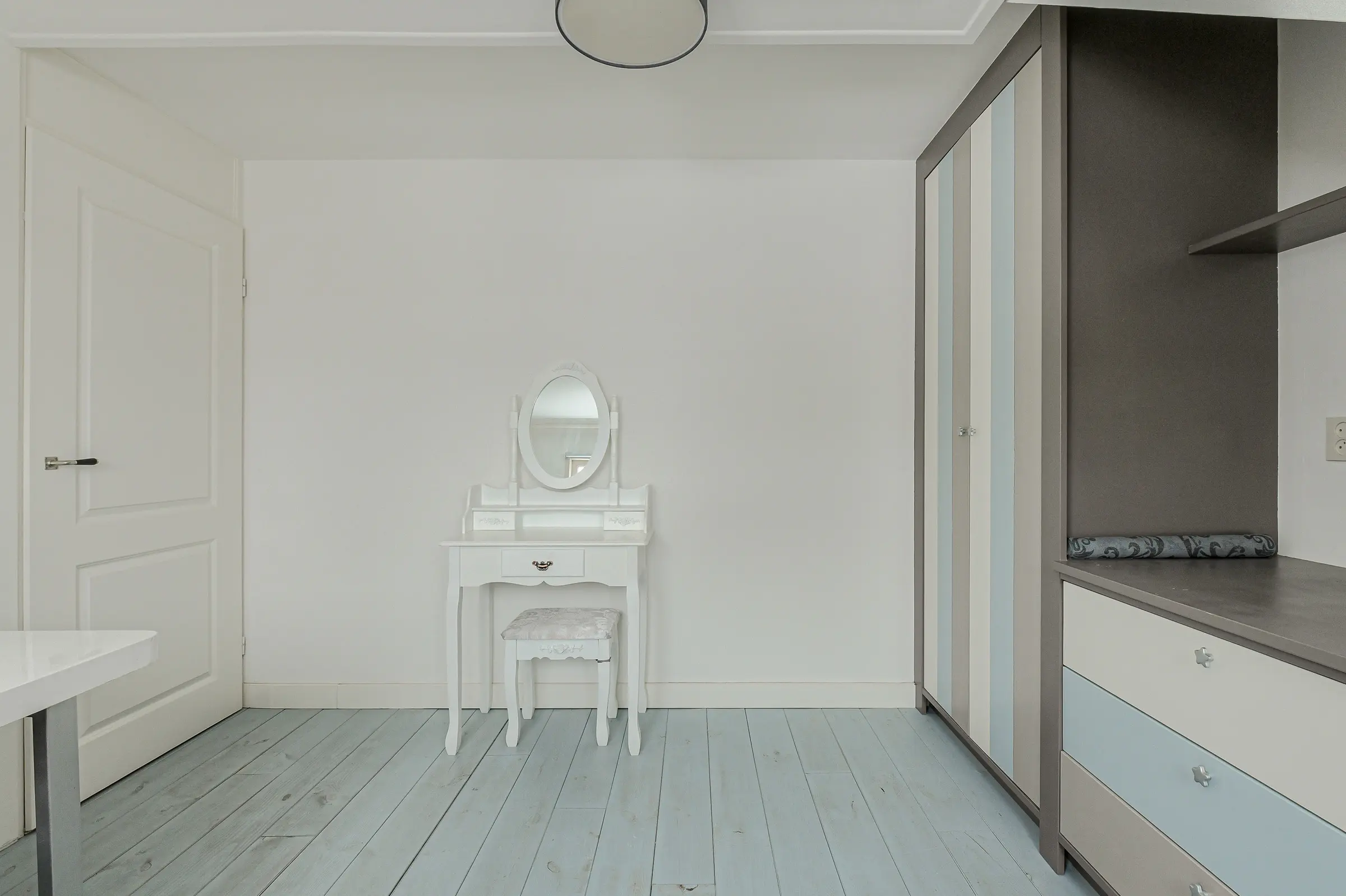 De bovenverdieping is voorzien van een houten vloer. Stookruimte met de plaats voor de HR combiketel bevindt zich op de overloop. Tevens vindt u hier de vlizotrap naar de zolder. Slaapkamer aan de achterzijde is voorzien van een vaste kast en dakkapel. Slaapkamer aan de voorzijde is voorzien van een vaste kast; de badkamer is fraai betegeld en voorzien van een inloopdouche, een hangend closet, designradiator en een wasmachine aansluiting.