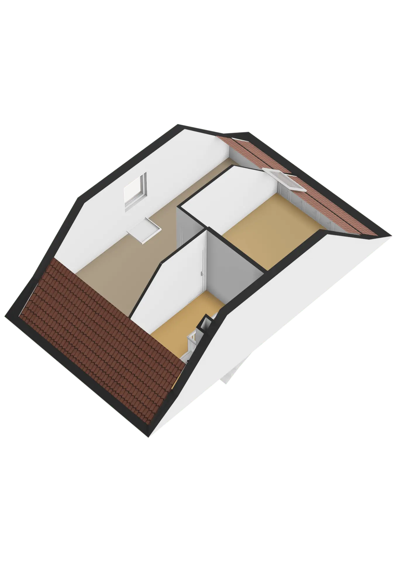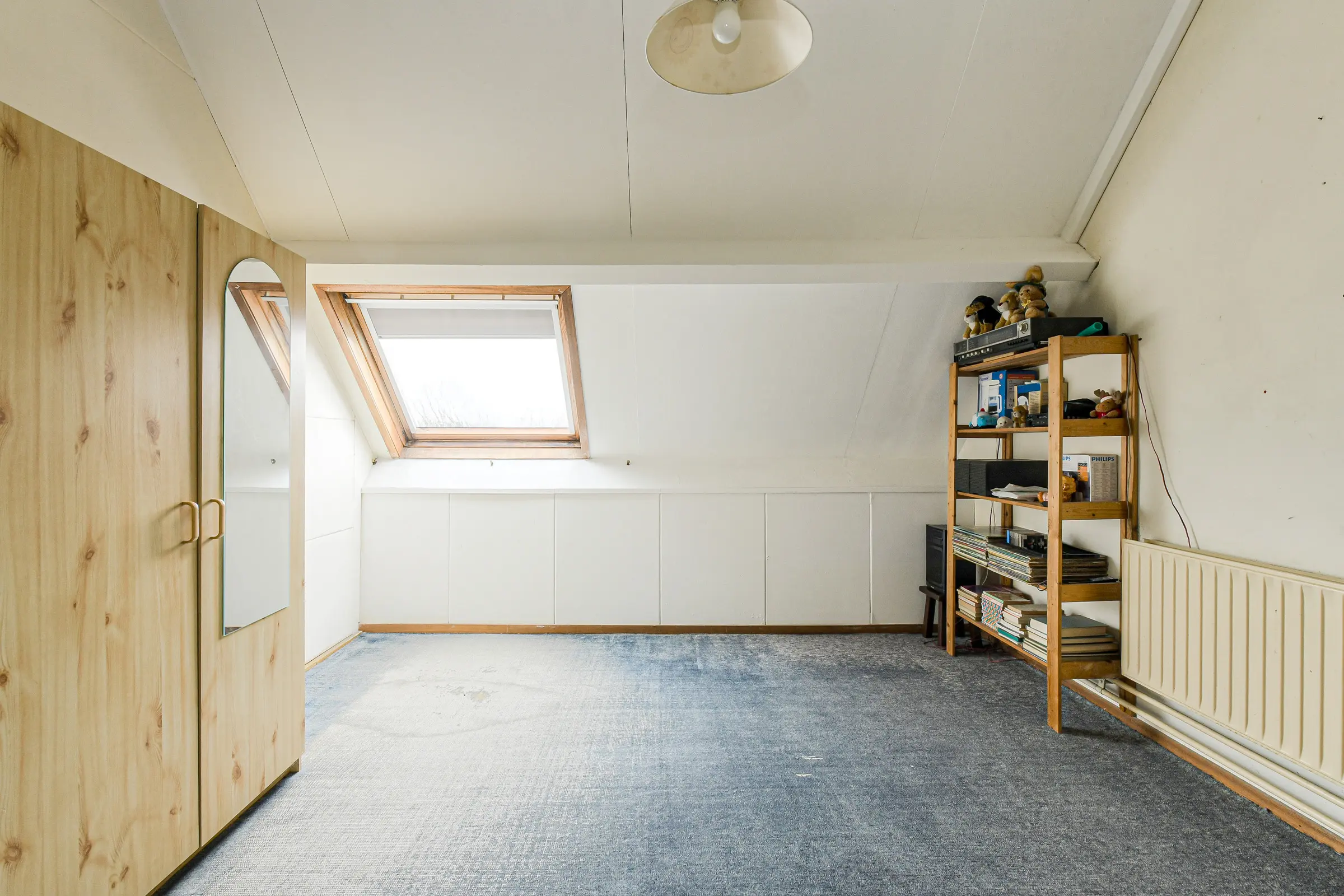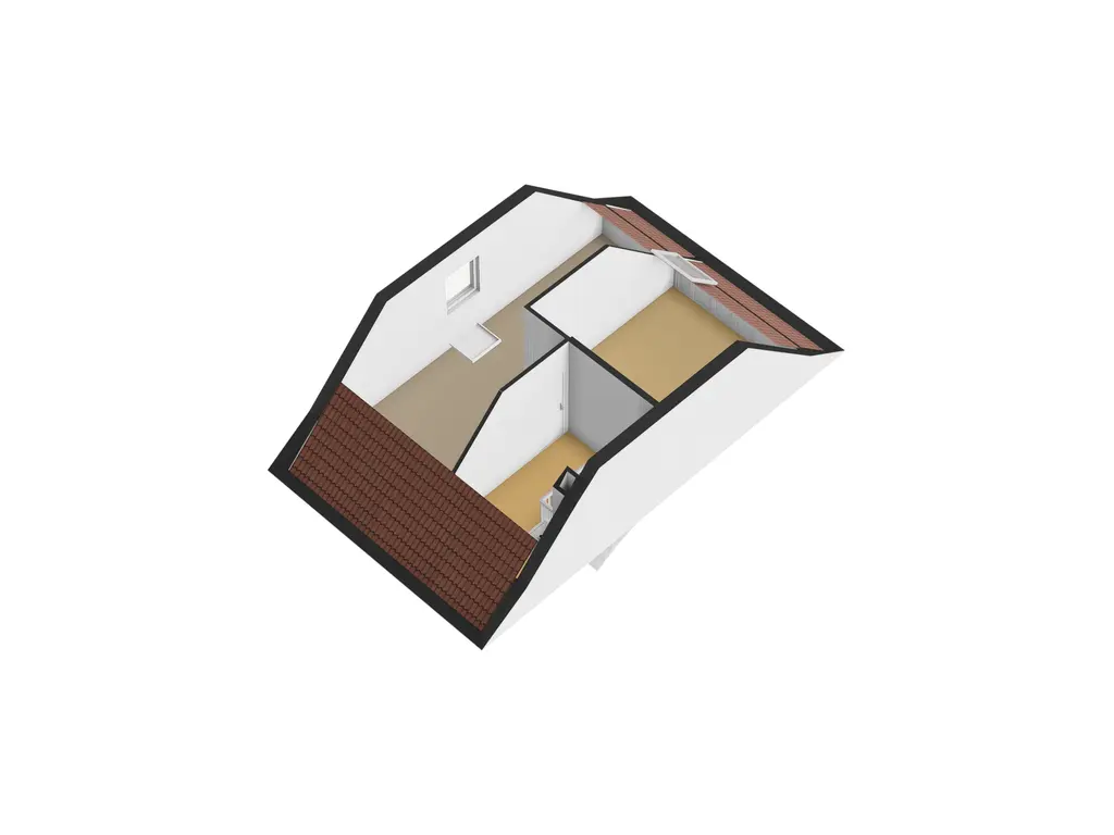 Overloop met plaats van de HR combiketel en mogelijkheid voor een wasmachine aansluiting; hobbyruimte (17.3 m2) met een groot gevelraam en trap naar de derde verdieping; royale slaapkamer (ca 3.45 x 4.15 m.) met dakvenster.