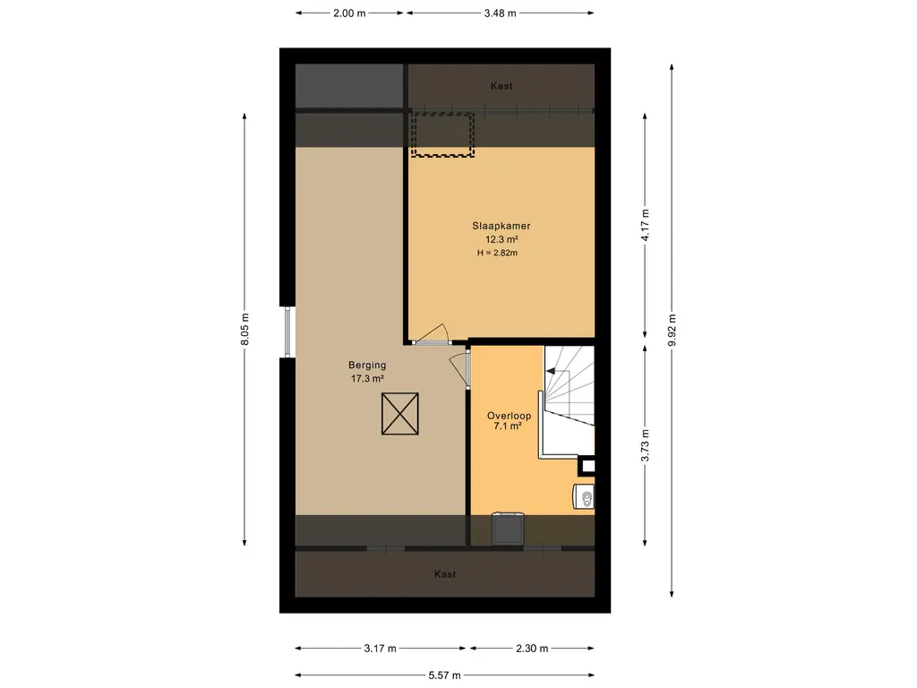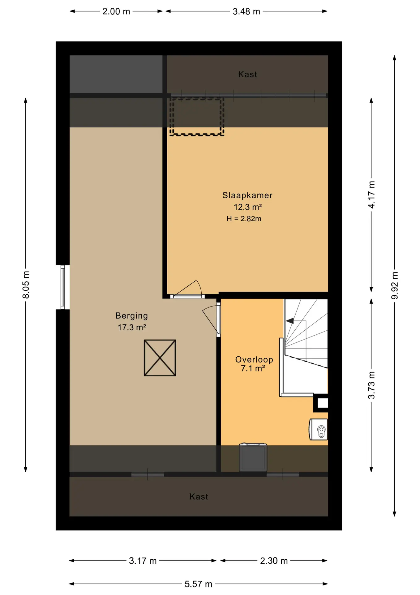 Deze verdieping is te bereiken doormiddel van een vlizotrap en heeft een hoogte van bijna 2 meter, stahoogte.