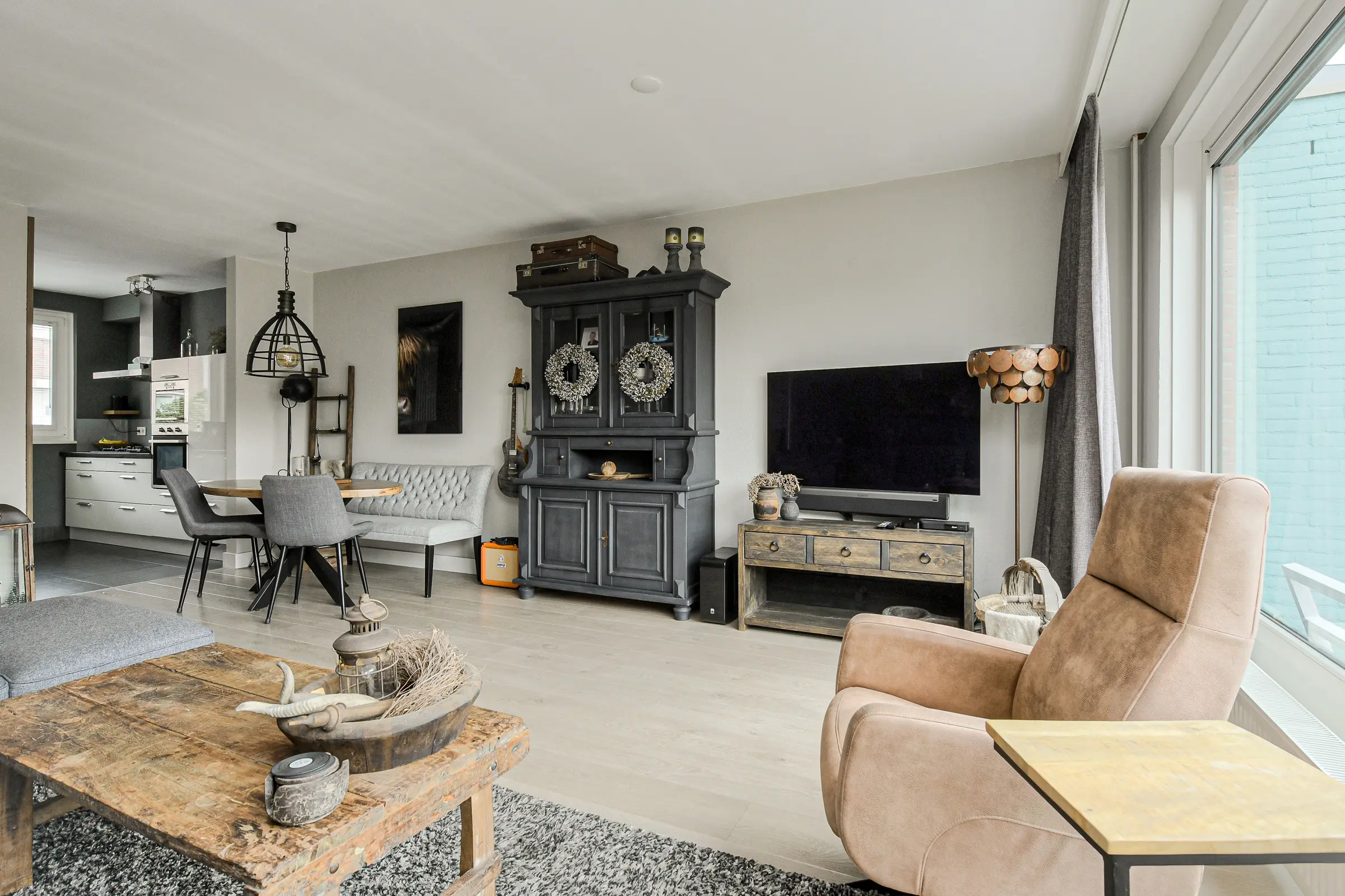 - Ruime woonkamer en open keuken met inbouwapparatuur