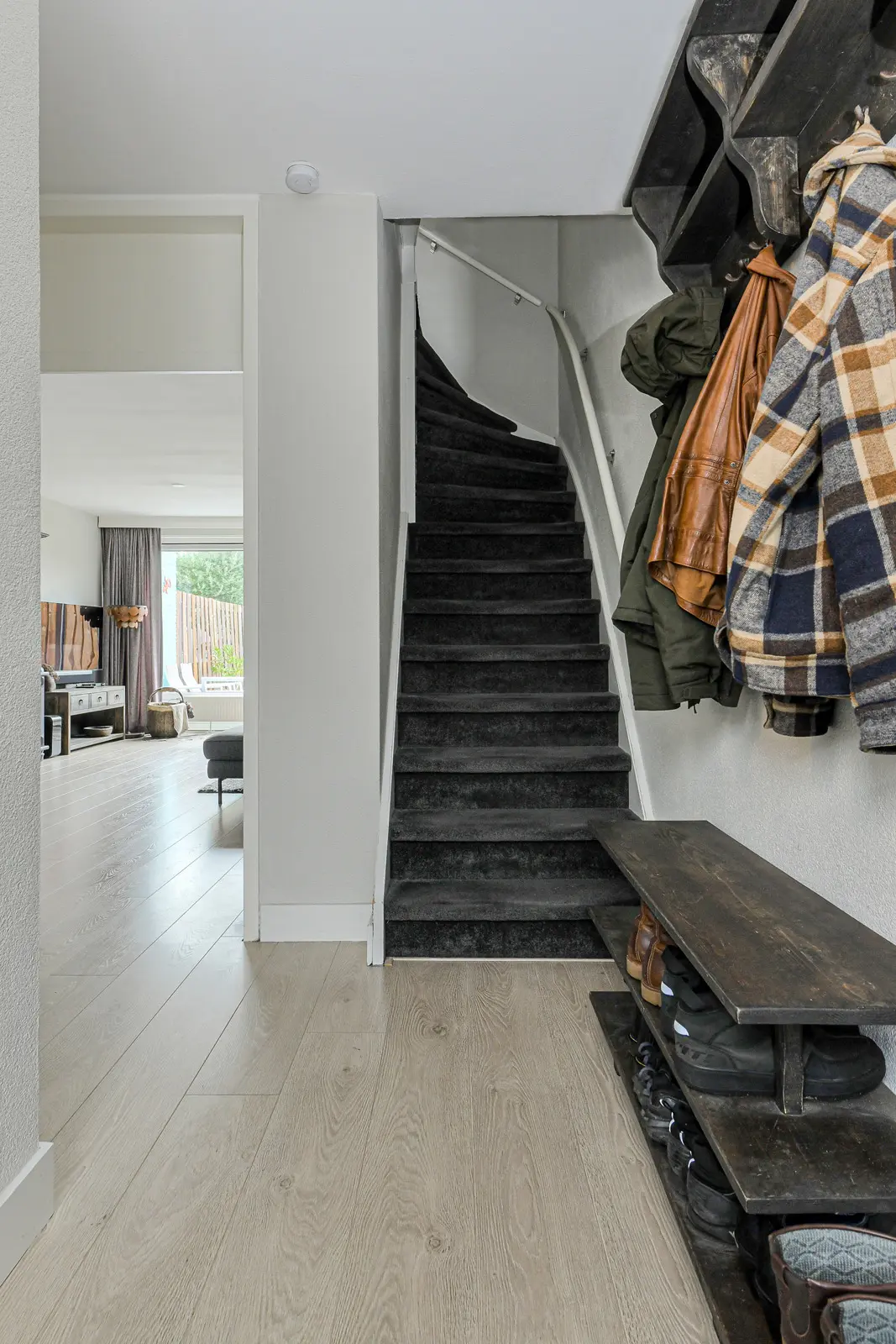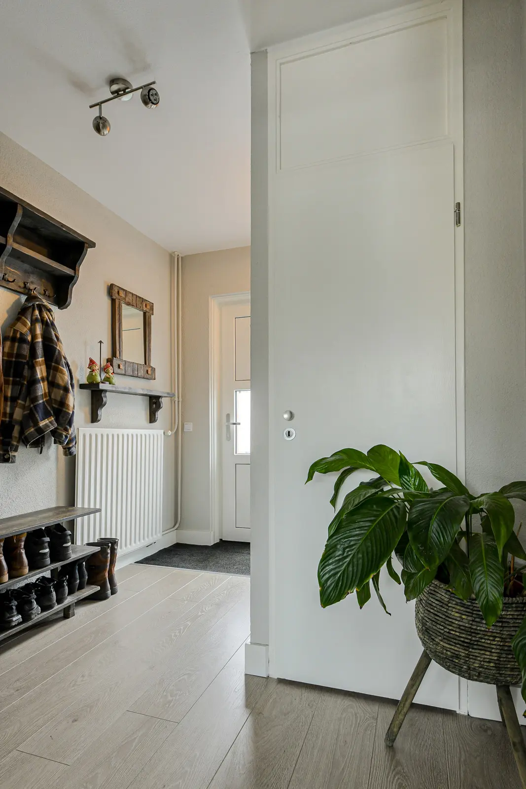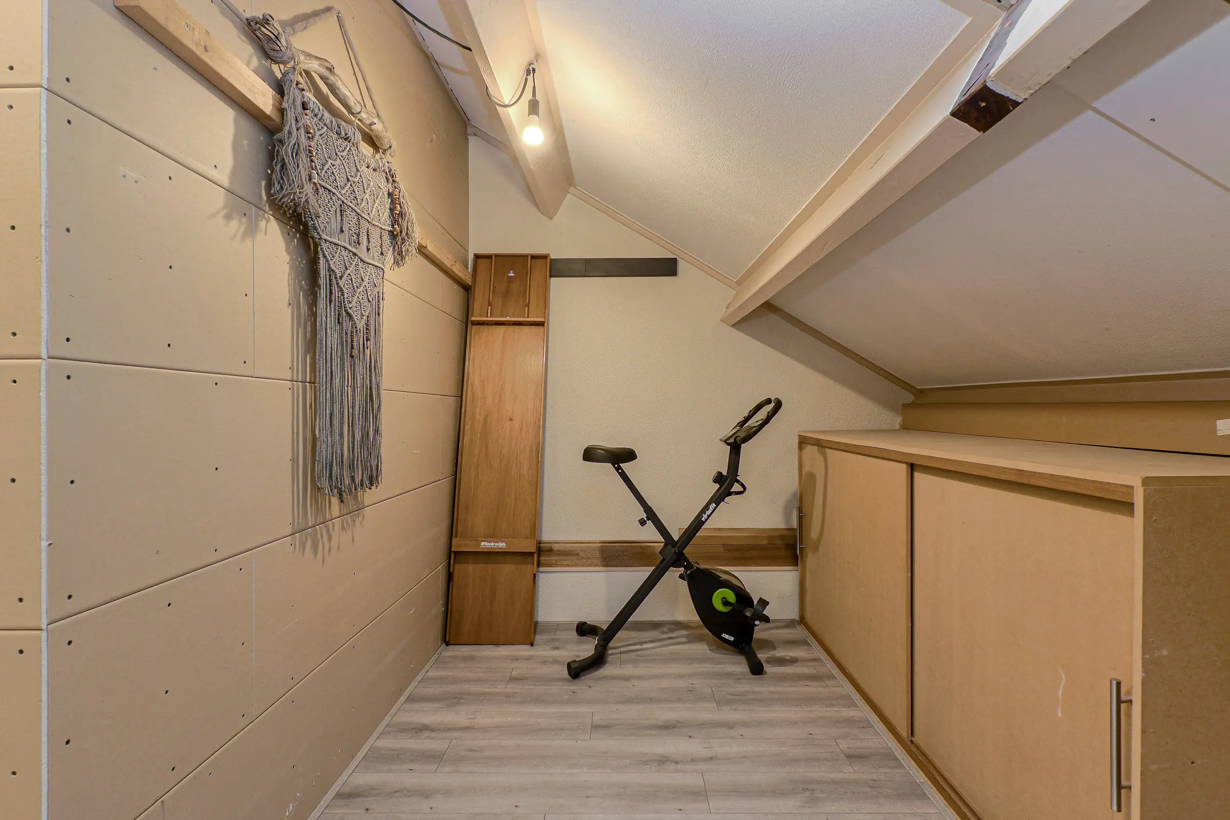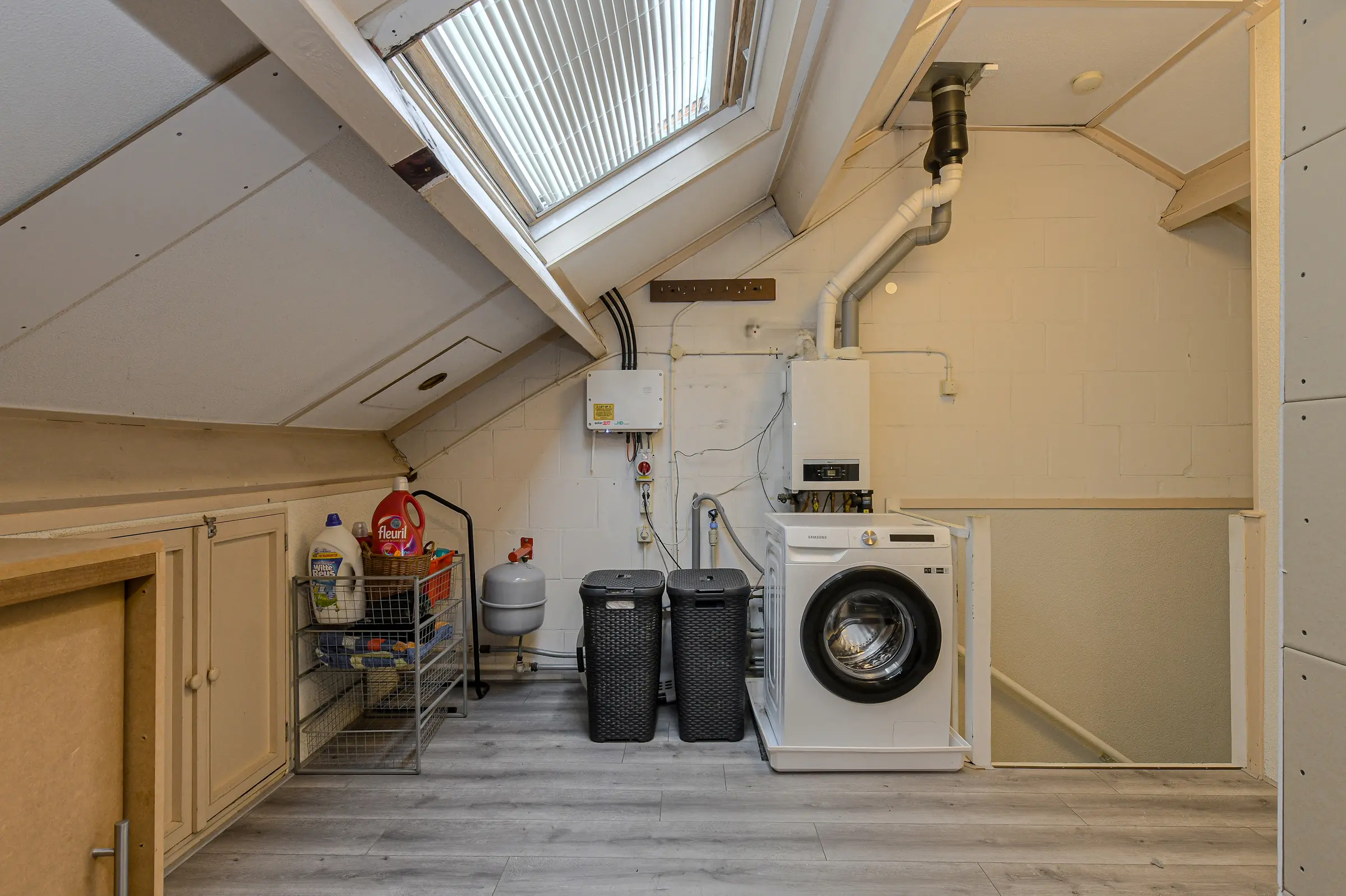 Vaste trap naar de voorzolder met dakvenster. In deze ruimte bevindt zich de aansluiting voor de wasmachine/wasdroger en plaats van de HR cv-ketel (Nefit, 2020); slaapkamer (afm. ca. 3.11 x 3.47 m.) met een dakkapel en een bergkast. Deze verdieping is voorzien van een laminaatvloer.