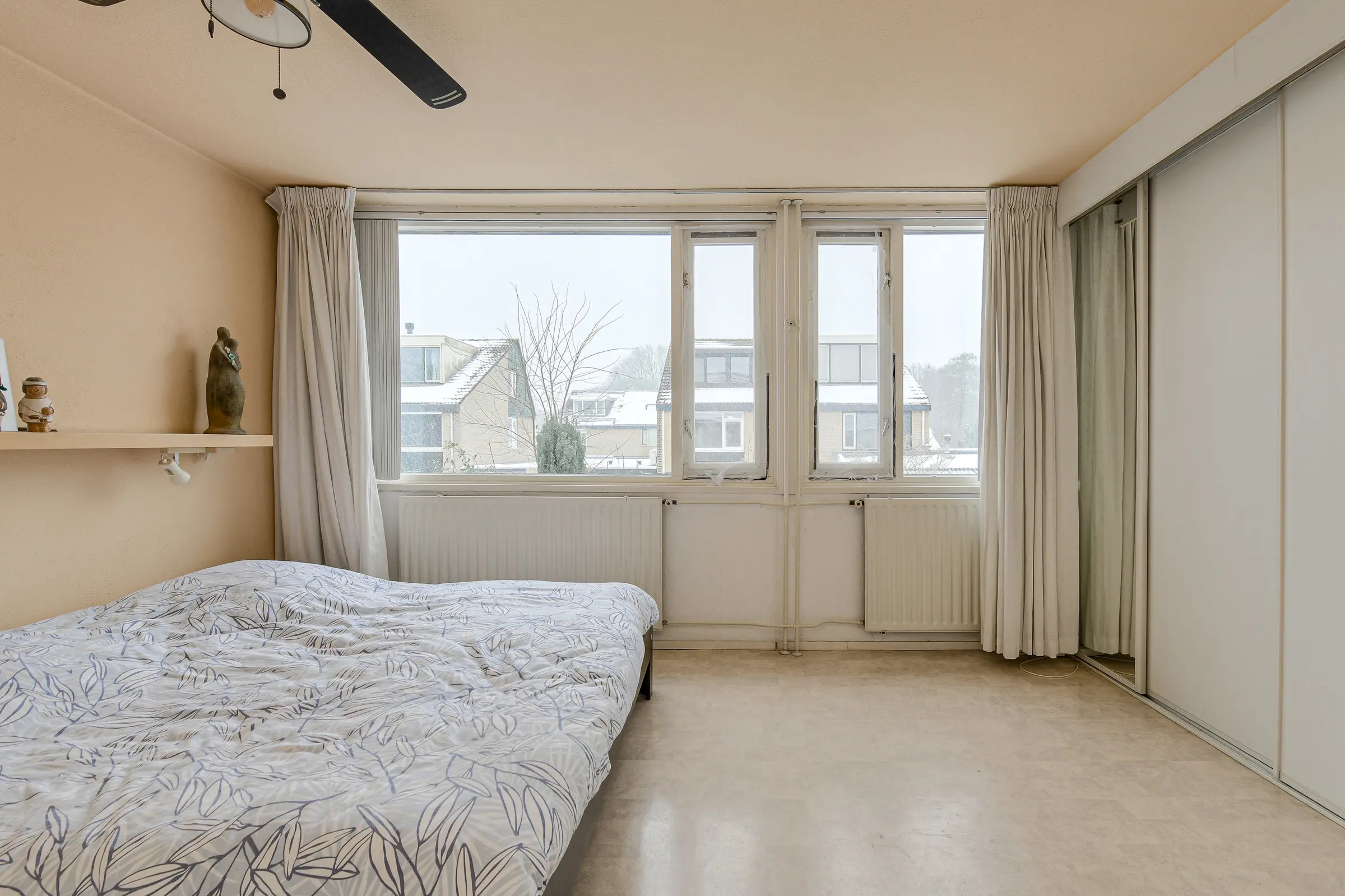 De huidige bewoner heeft hier 25 jaar met veel plezier gewoond. De woning is aan de achterzijde uitgebouwd waardoor er een tuinkamer is gerealiseerd met een speelse verhoging. Op de eerste verdieping zijn twee royale slaapkamers (voorheen 3 slaapkamers). Op zolder is de derde slaapkamer. Alle drie de slaapkamers zijn zeer ruim (19, 14 en 13 m²).