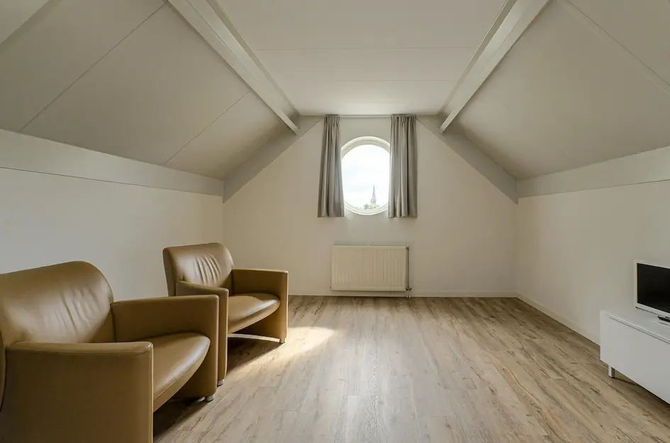 Voorzolder met plaats voor WTW terugwin systeem van Brink en HR combiketel; slaapkamer voorzijde; slaapkamer achterzijde met dakkapel. Nagenoeg de gehele verdieping is voorzien van een PVC vloer.