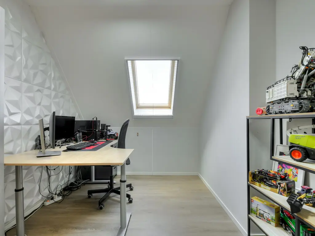 Een vaste trap brengt u naar de zolderverdieping met voorzolder, afgesloten technische ruimte (warmtepomp, WTW-installatie, omvormer en wasmachine-aansluiting) en een vierde slaapkamer met een Velux dakraam aan de voorzijde van de woning. Daarnaast is er nog een hobbyruimte te vinden en de opgang naar de vliering. Naast de enorme bergruimte op de vliering zijn er in de knieschotten meerdere openingen gecreëerd en luxe afgewerkt waardoor in nog meer bergruimte is voorzien. De 2e verdieping biedt de mogelijkheid om een 5e of zelfs 6e slaapkamer te realiseren. Ook hier is een pvc-vloer met vloerverwarming aanwezig.