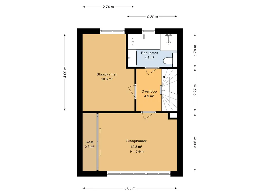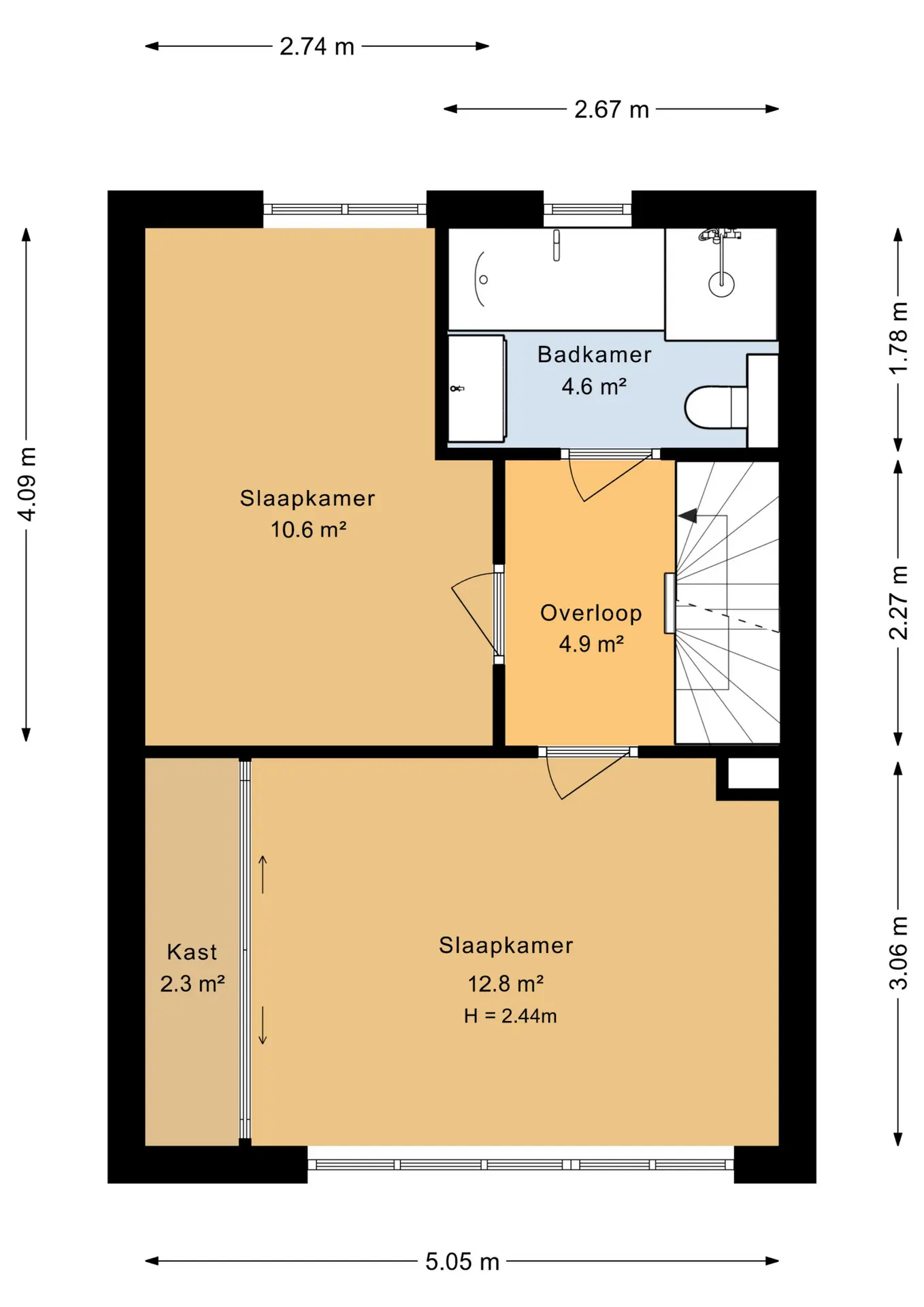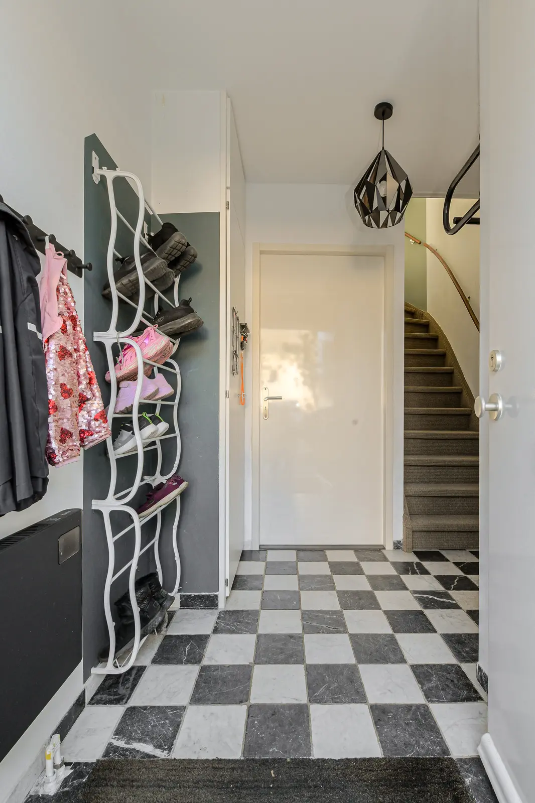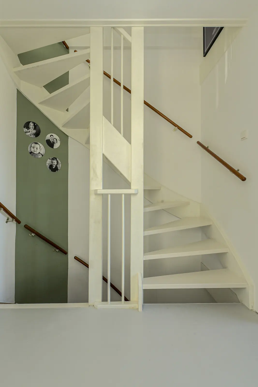 Overloop met trapopgang naar de tweede verdieping en toegang tot 2 praktische slaapkamers en badkamer.