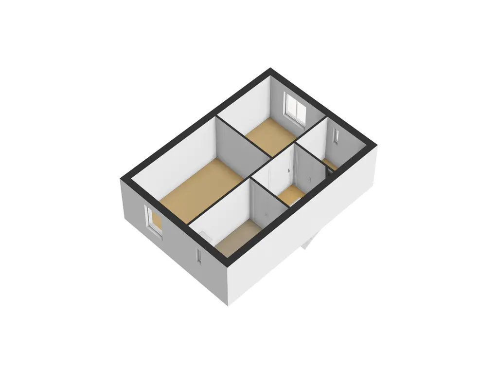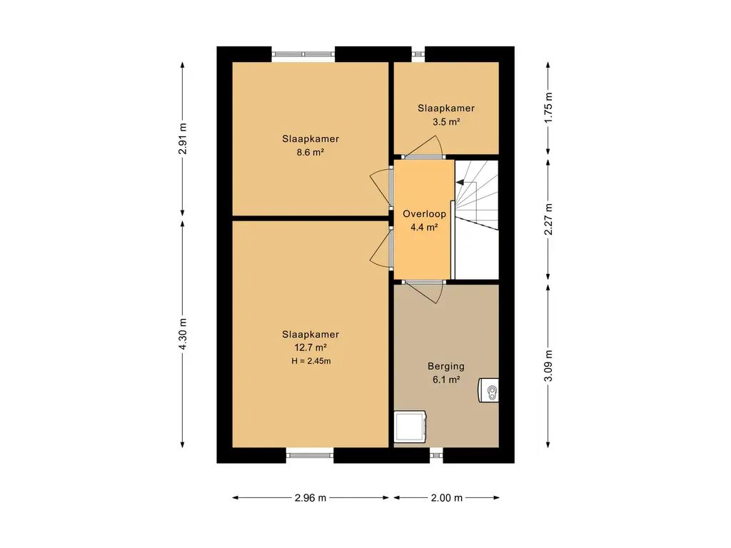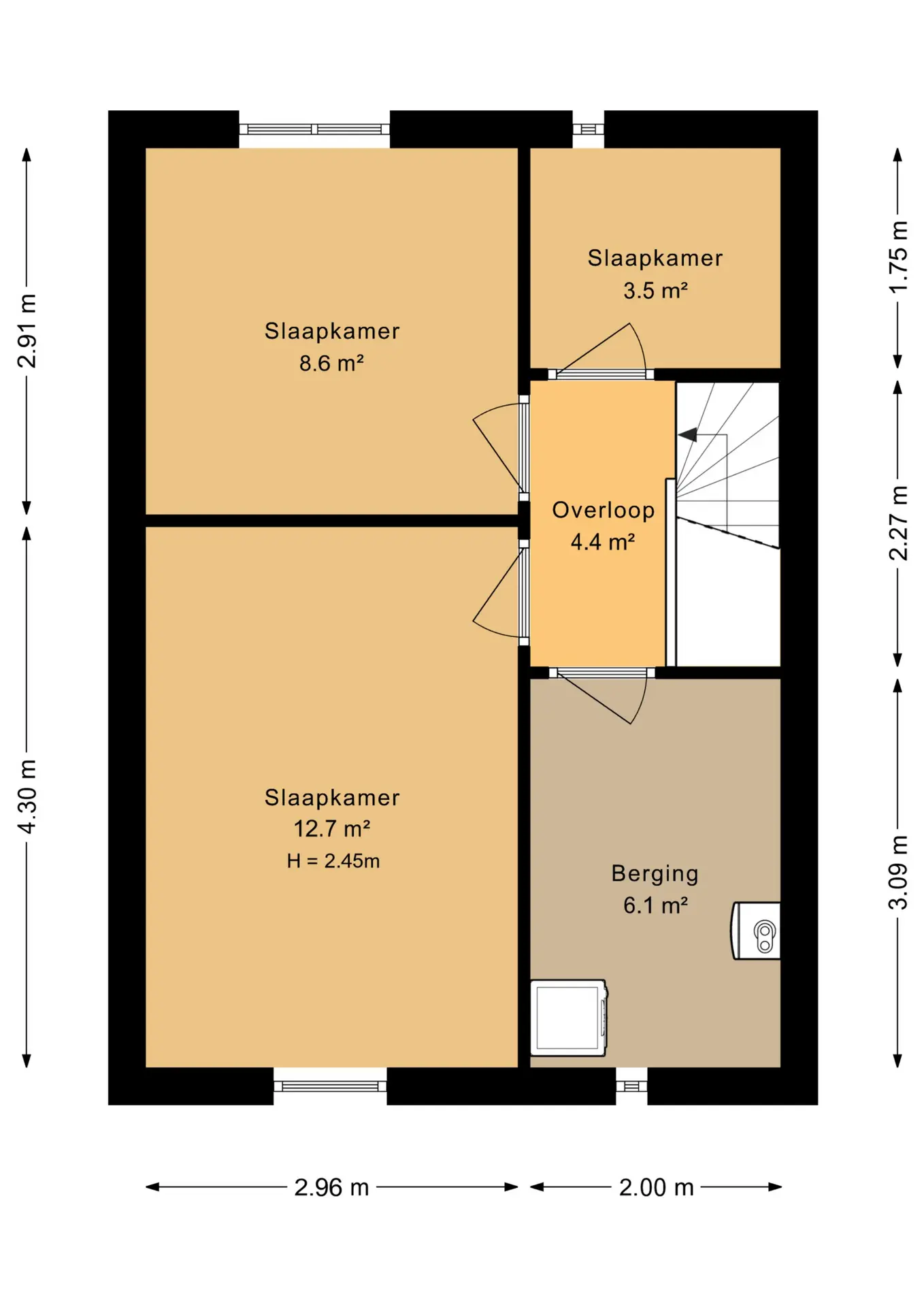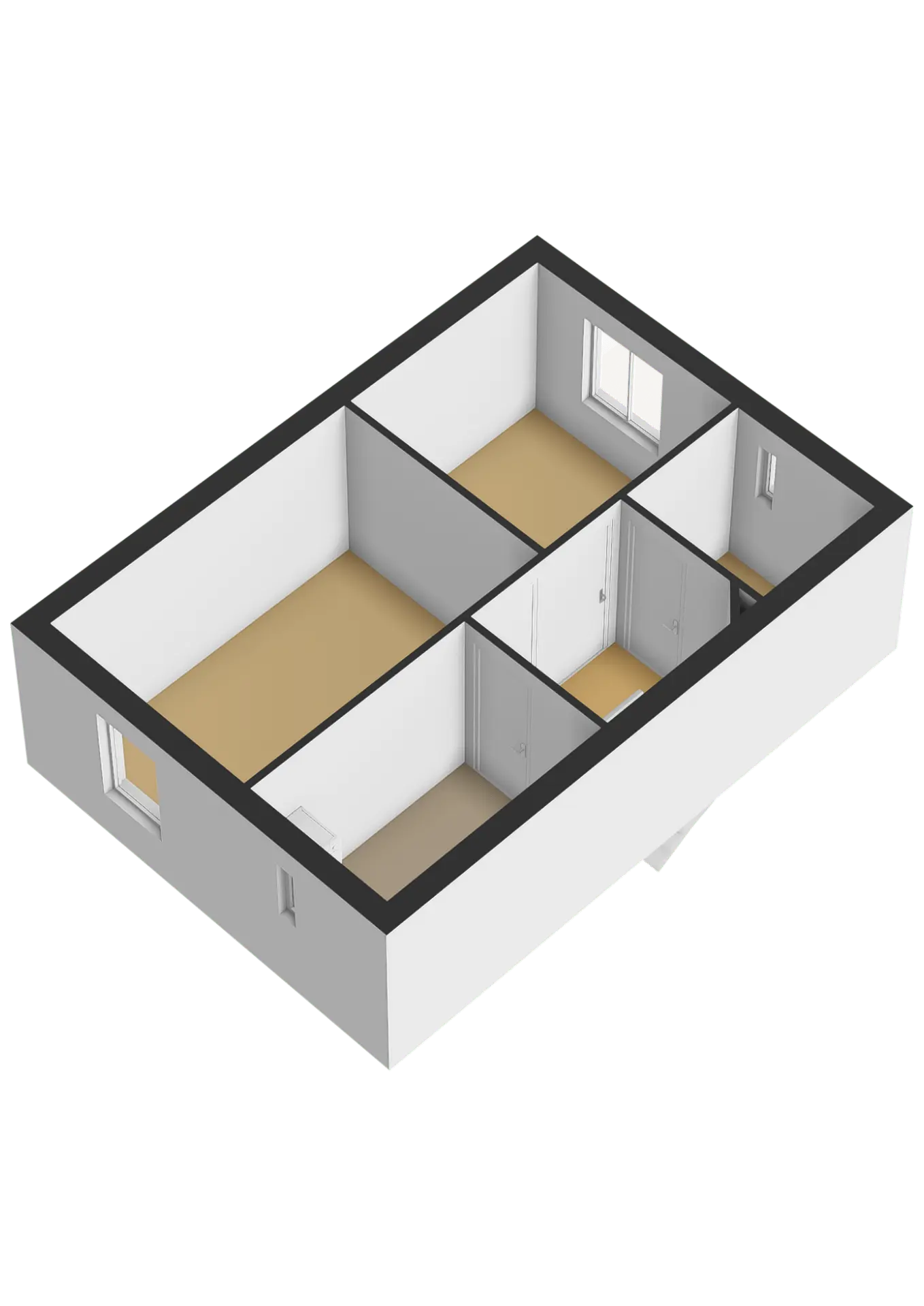 Overloop met toegang naar 2 slaapkamers, werkkamer en de technische ruimte.