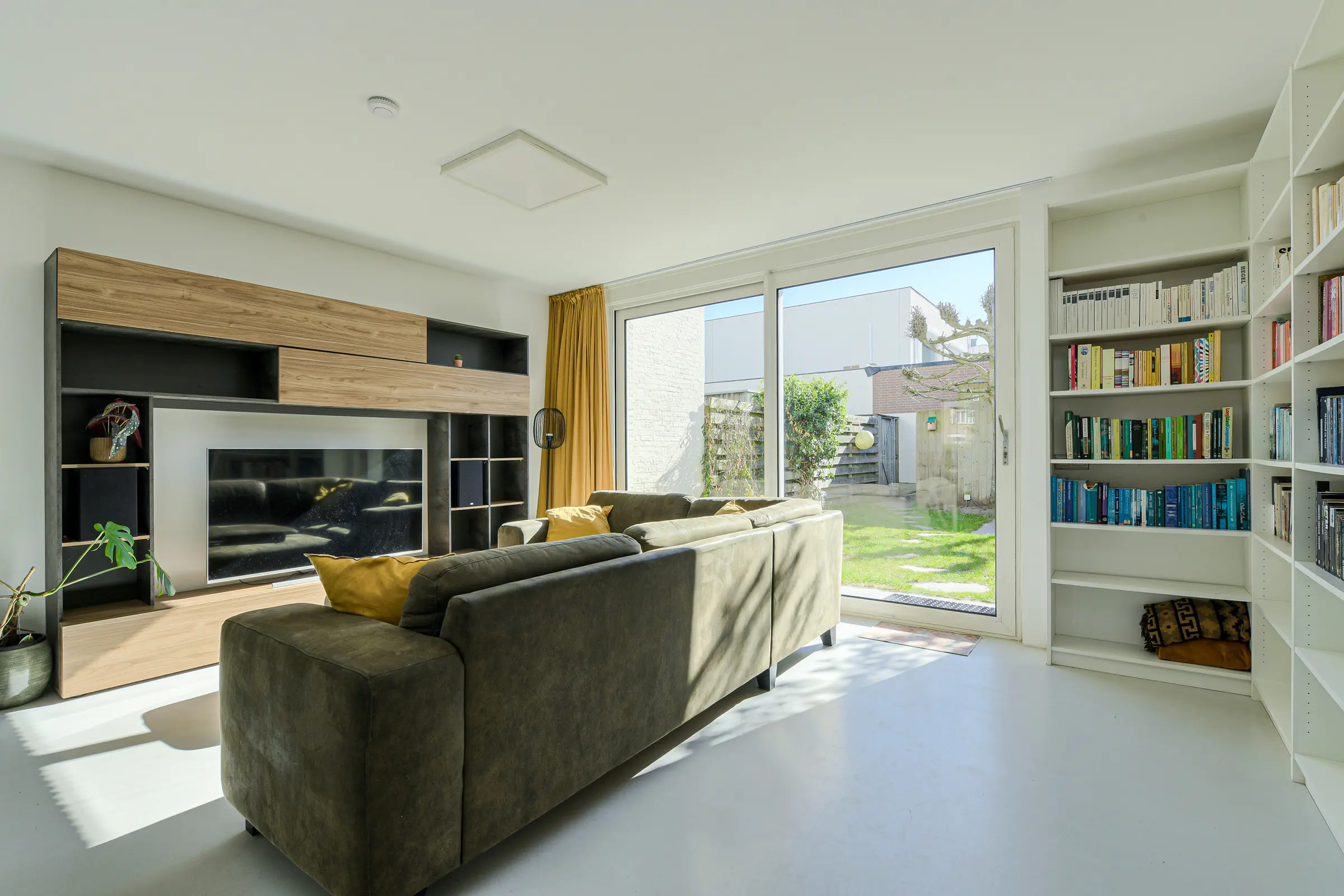 Via de schuifpui is er toegang tot onderhoudsvriendelijke tuin op het zuiden gelegen met diverse terrassen, een gazon en een ruime schuur met zolderberging. De tuin heeft een achterom en een aparte ruimte voor de afvalcontainers.