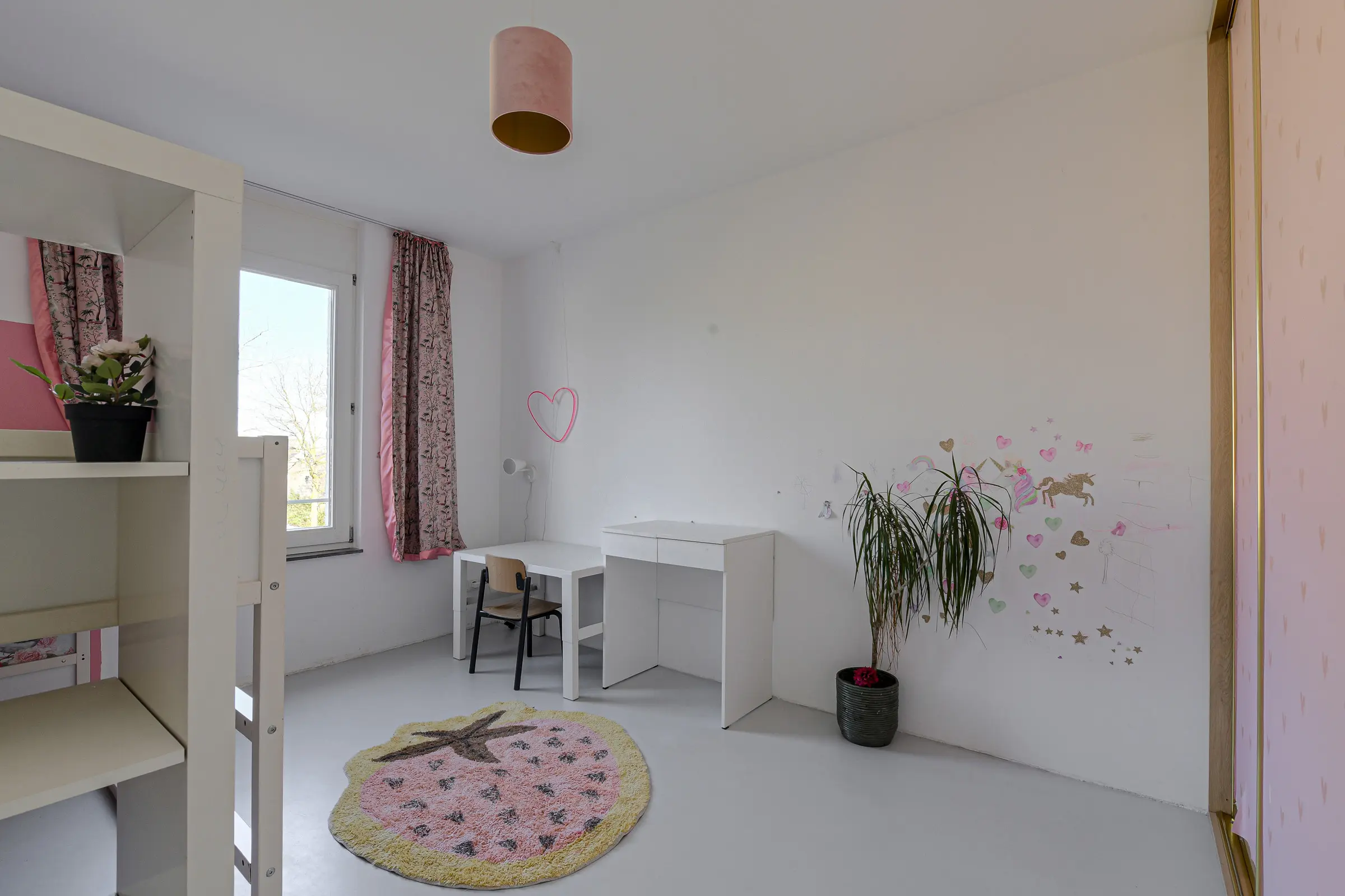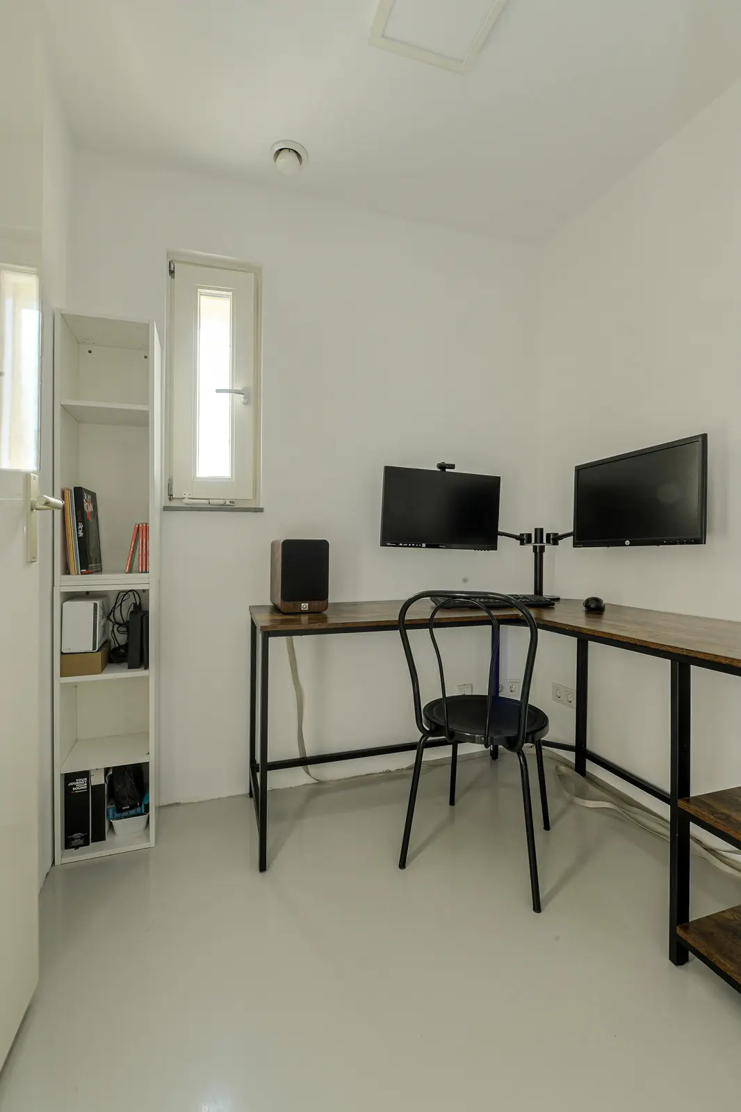 Slaapkamer 5/ werkkamer (4 m2), voorheen een badkamer. De aansluitingen zijn nog aanwezig.