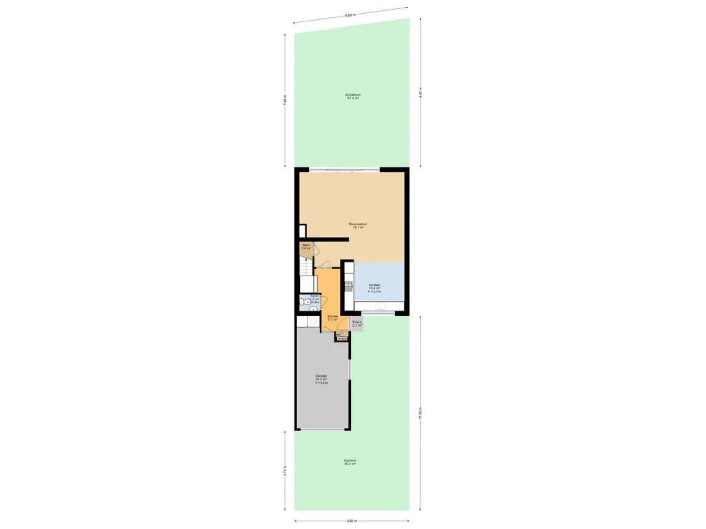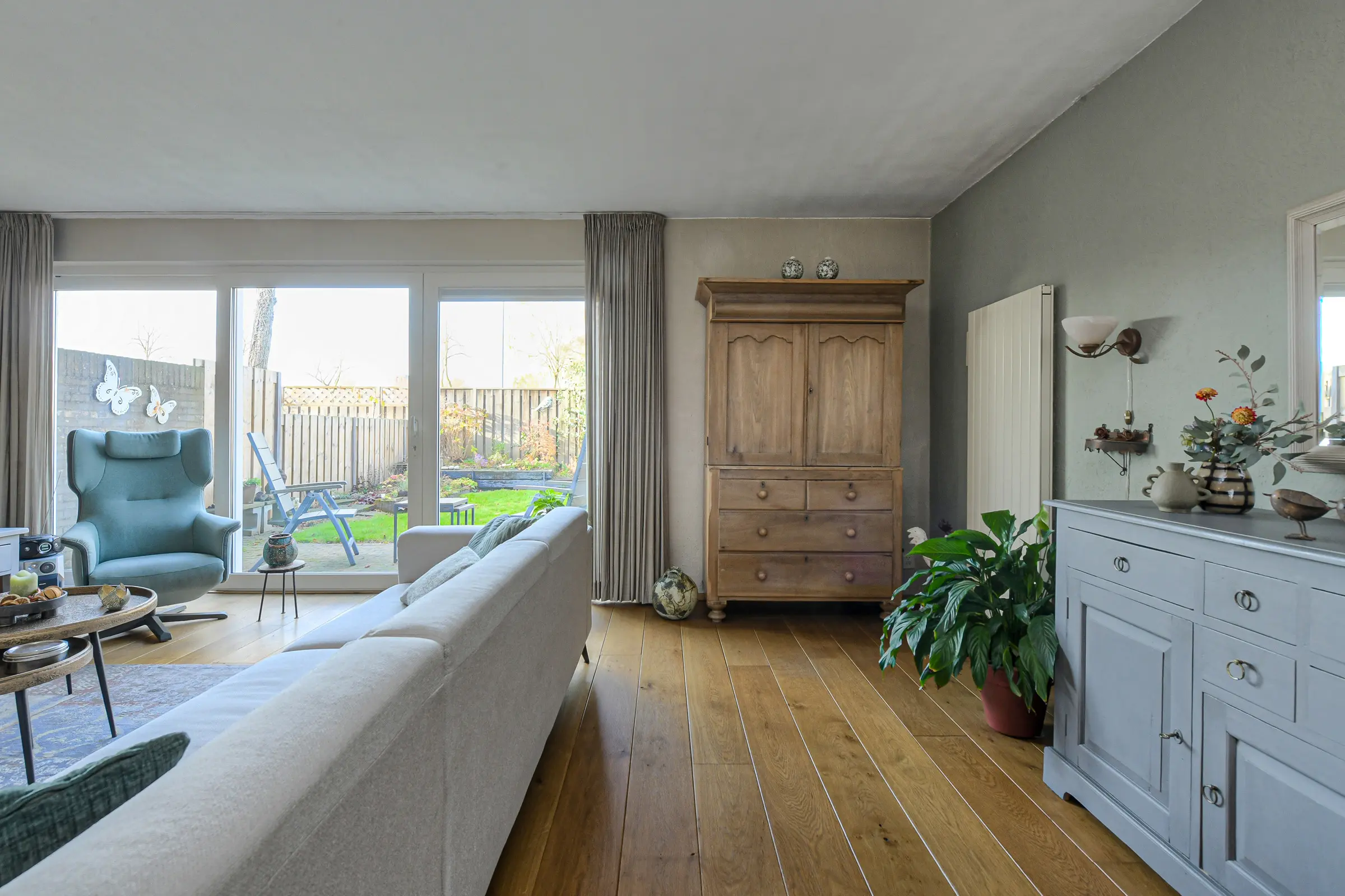 Uw nieuwe woning beschikt over een voor- en achtertuin van 55 m². De hoofdtuin bevindt zich aan de achterzijde van het huis en heeft een westelijke oriëntatie. De goed onderhouden tuin is voorzien van een gazon en borders met vaste beplanting en biedt voldoende ruimte voor ontspanning in de buitenlucht.