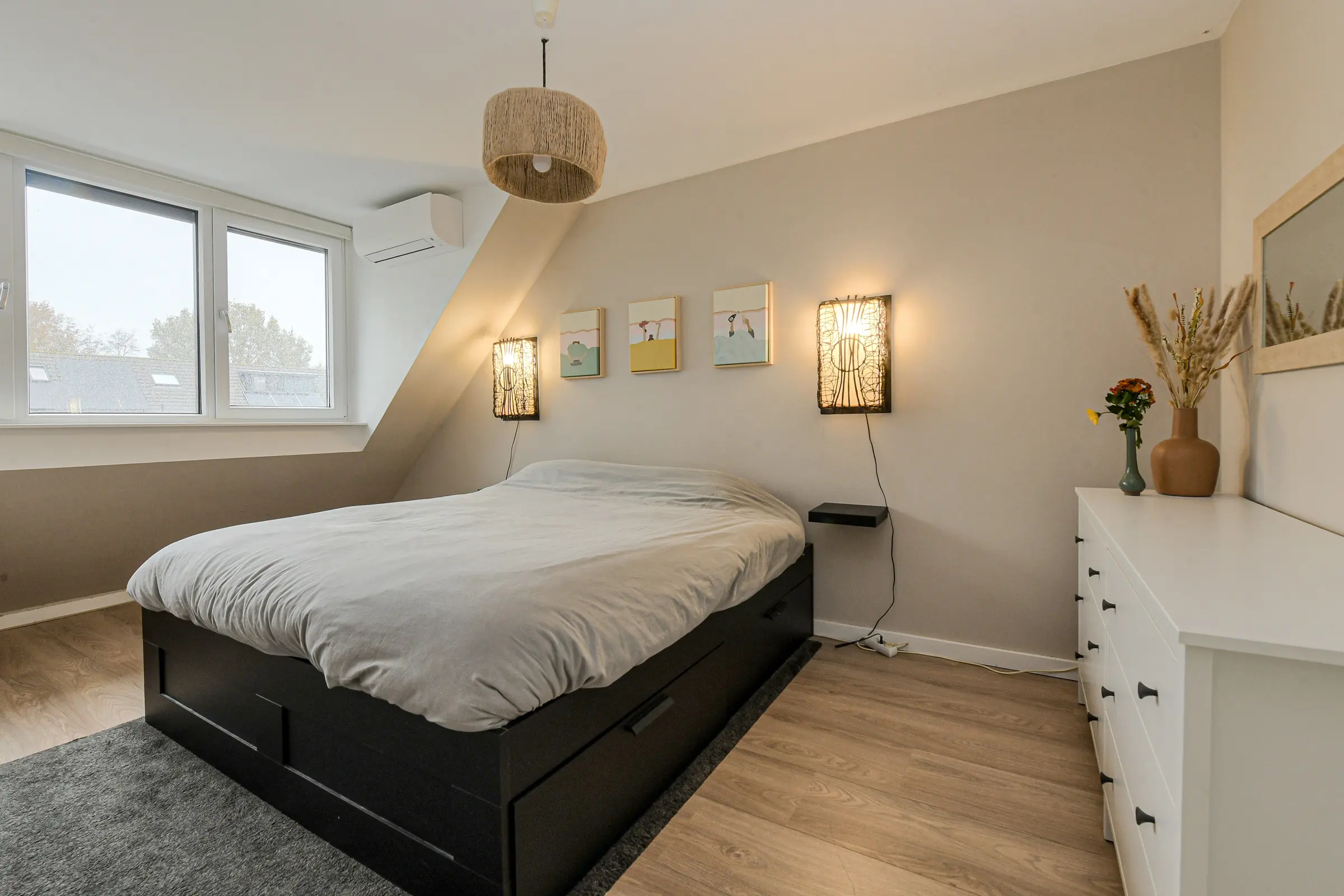 Hier bevinden zich drie fijne slaapkamers en een moderne badkamer. Aan de achterzijde is een kunststof dakkapel geplaatst, waardoor hier twee ruime en aangenaam lichte kamers zijn ontstaan. Beide slaapkamers aan deze zijde zijn bovendien voorzien van rolluiken, wat zorgt voor extra comfort en verduistering. In de grote slaapkamer aan de achterzijde is recent (eind 2023) een airco geplaatst, wat extra comfort biedt. De gehele verdieping is afgewerkt met een brede laminaatvloer in houtlook, wat zorgt voor een warme en eigentijdse uitstraling.