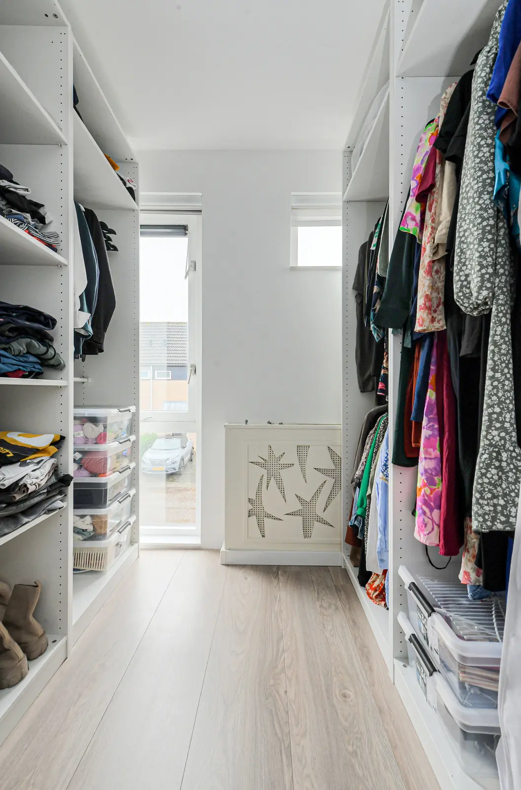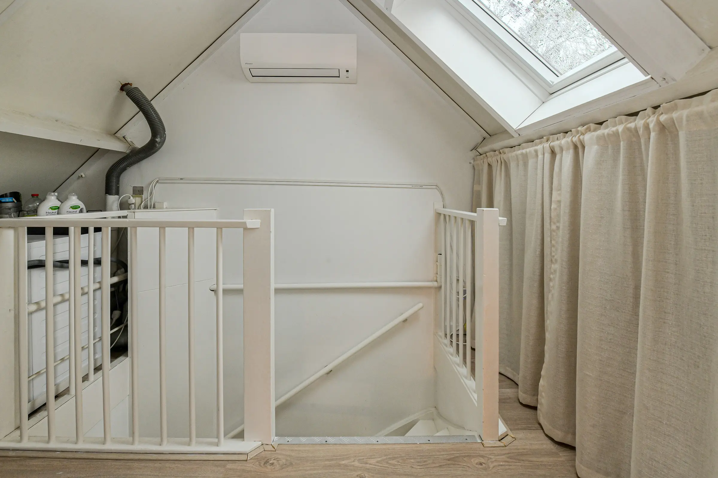 De zolder bestaat uit een praktische voorzolder en een extra slaapkamer. Op de voorzolder vind je de aansluitingen voor de wasmachine en droger, box mechanische ventilatie en een airco-unit (eind 2022).