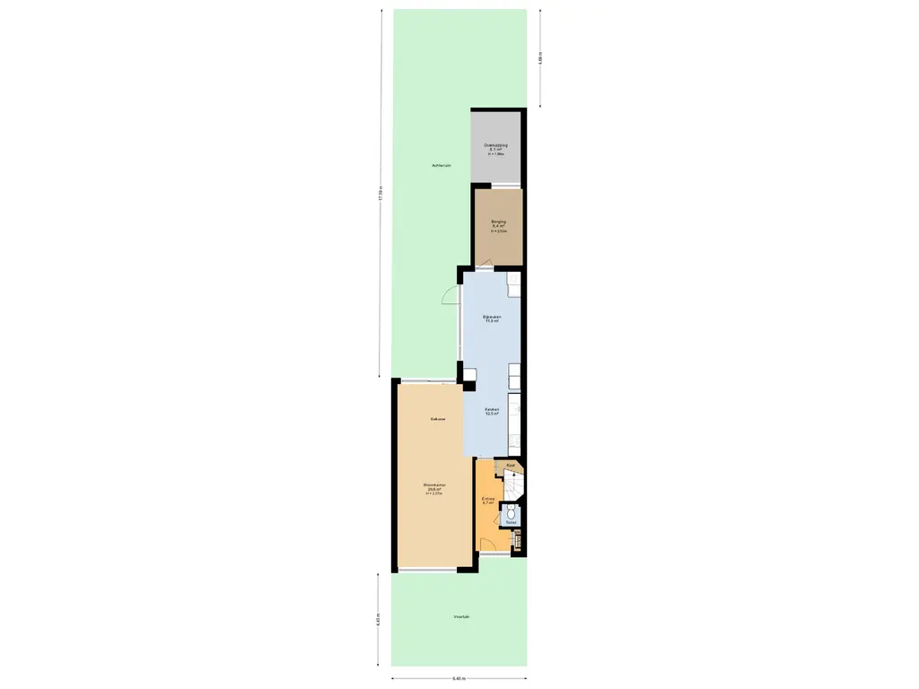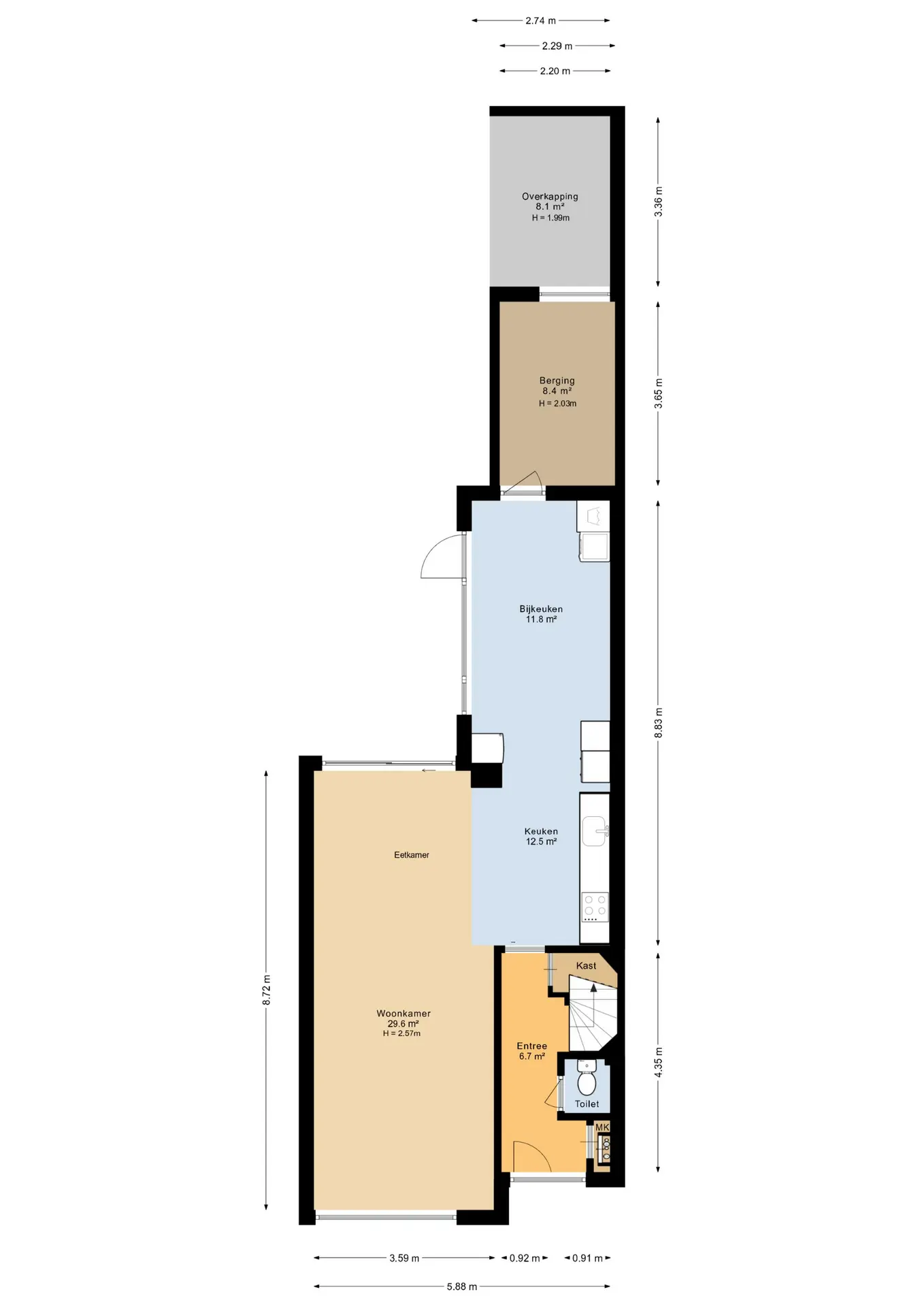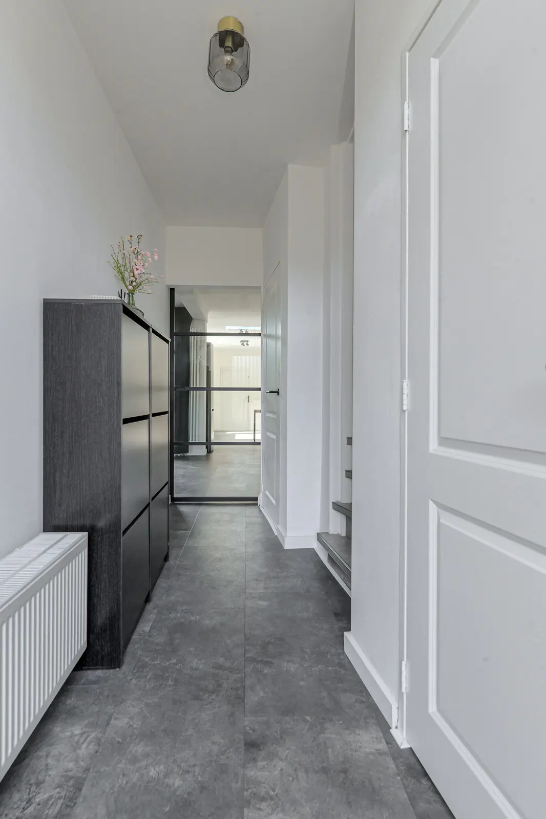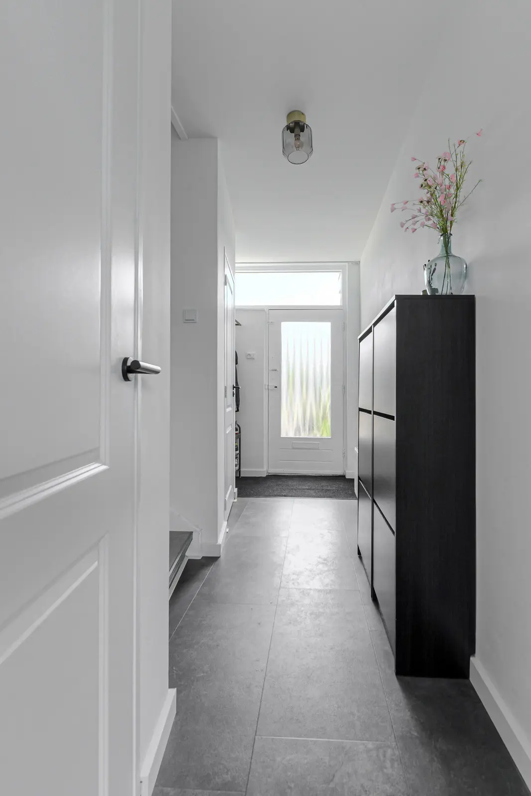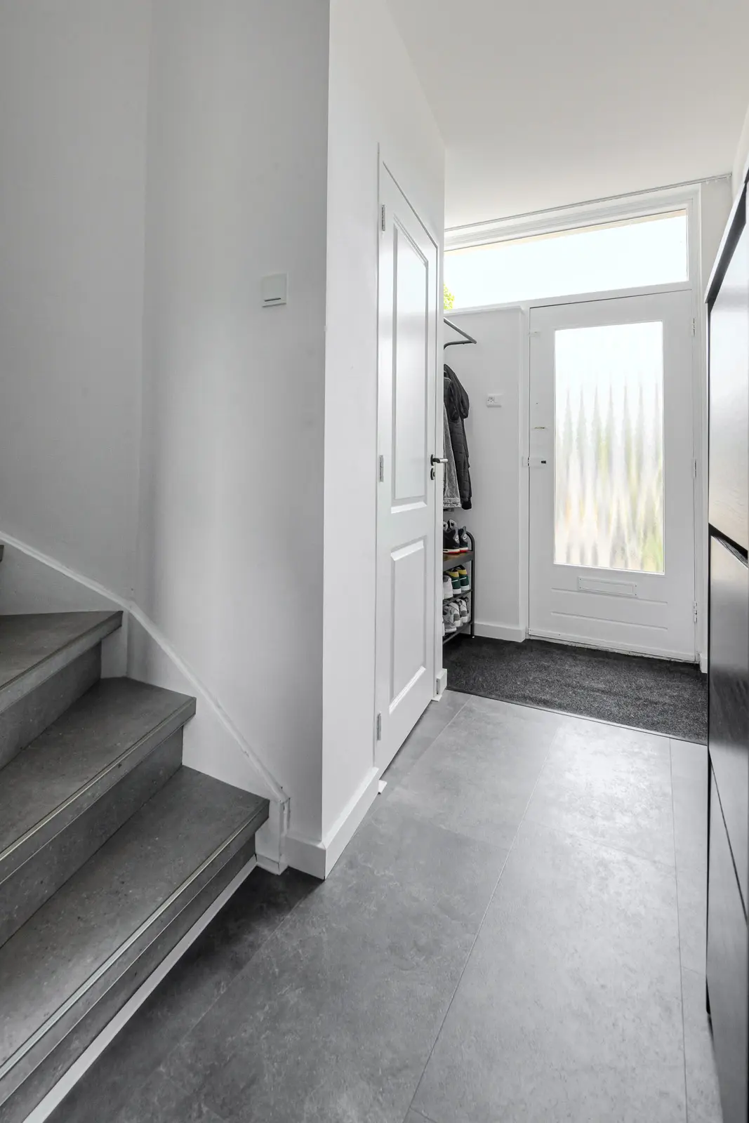 De woning heeft een ruime entree met hal is voorzien van een PVC vloer en waar je de trapopgang, meterkast en trap-/kelderkast vindt voor extra opbergruimte. Het separate toilet is voorzien van een duoblok toilet.