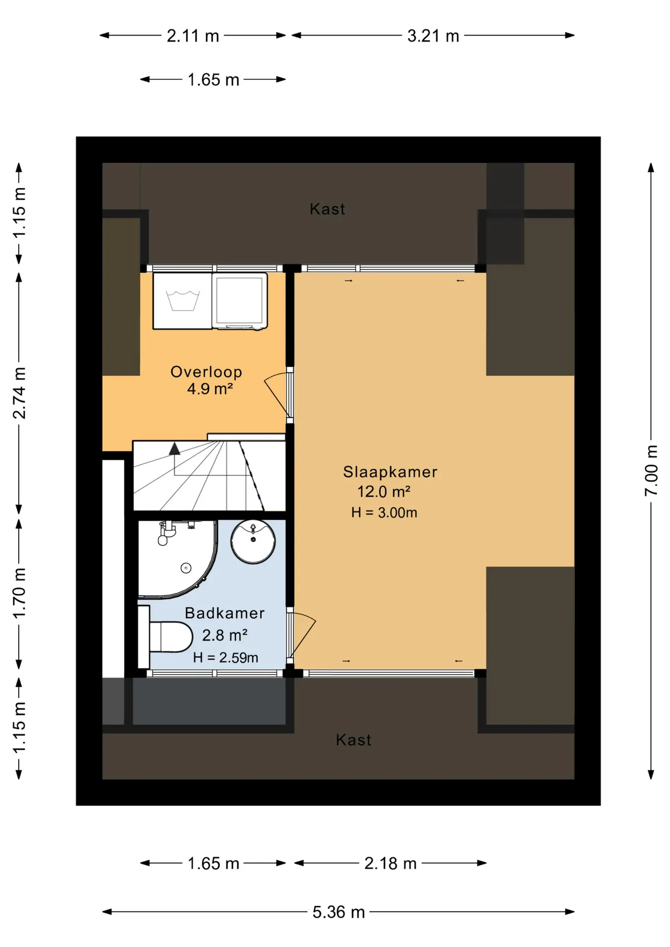 - Voorzolder is voorzien van een dakkapel en er is een aansluiting voor de wasmachine en de droger.