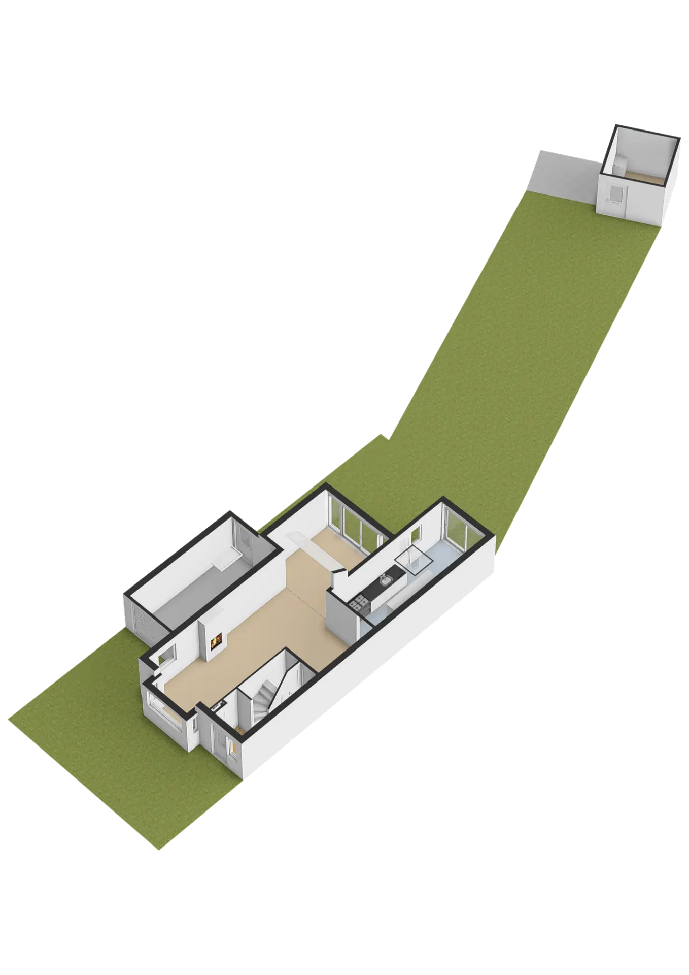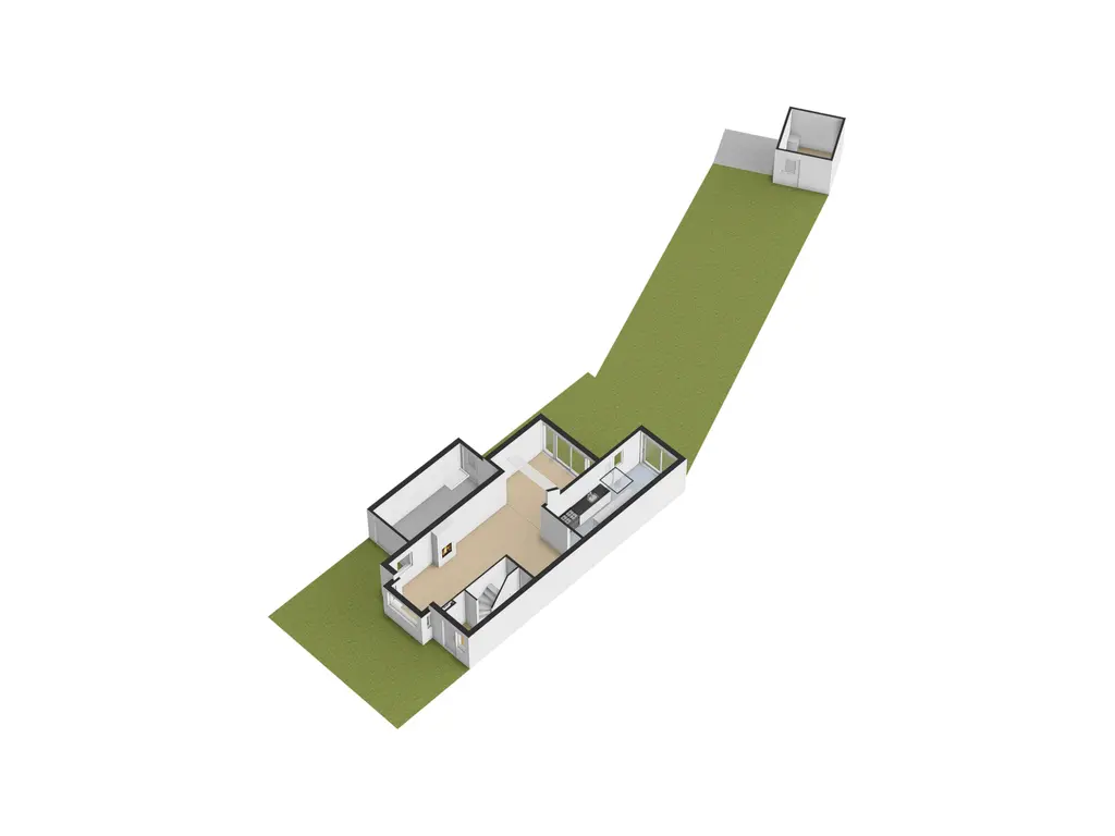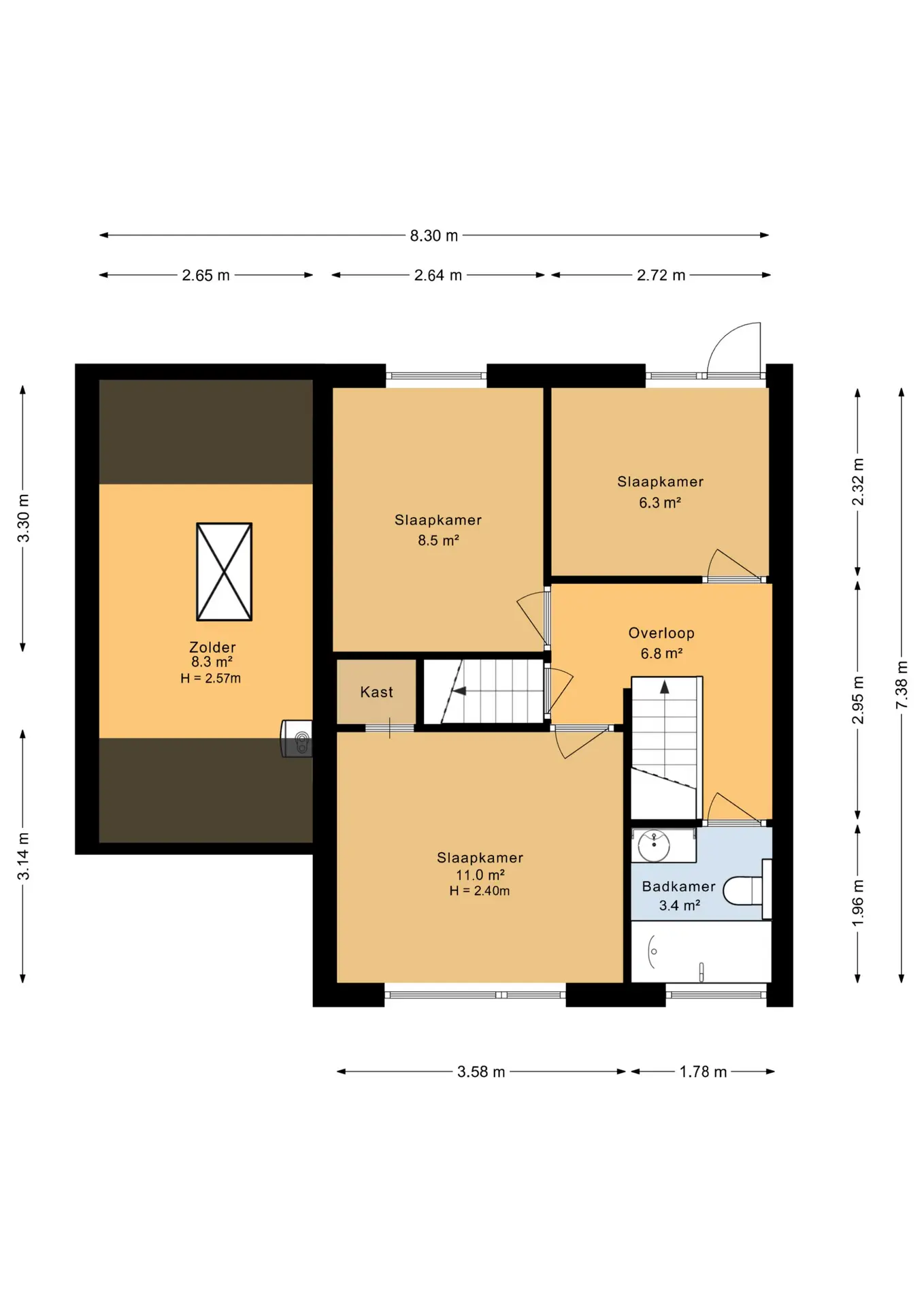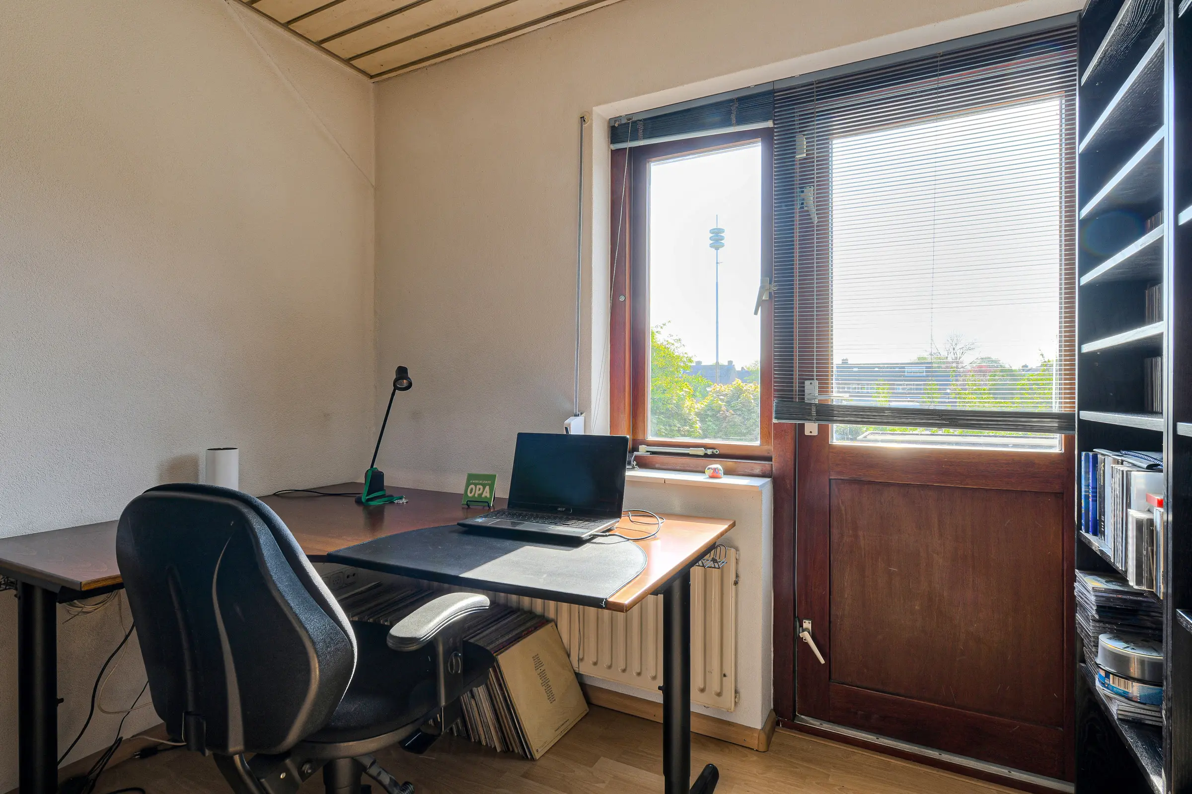 - Slaapkamer achterzijde (afm. 8,5 m2) met een rolluik