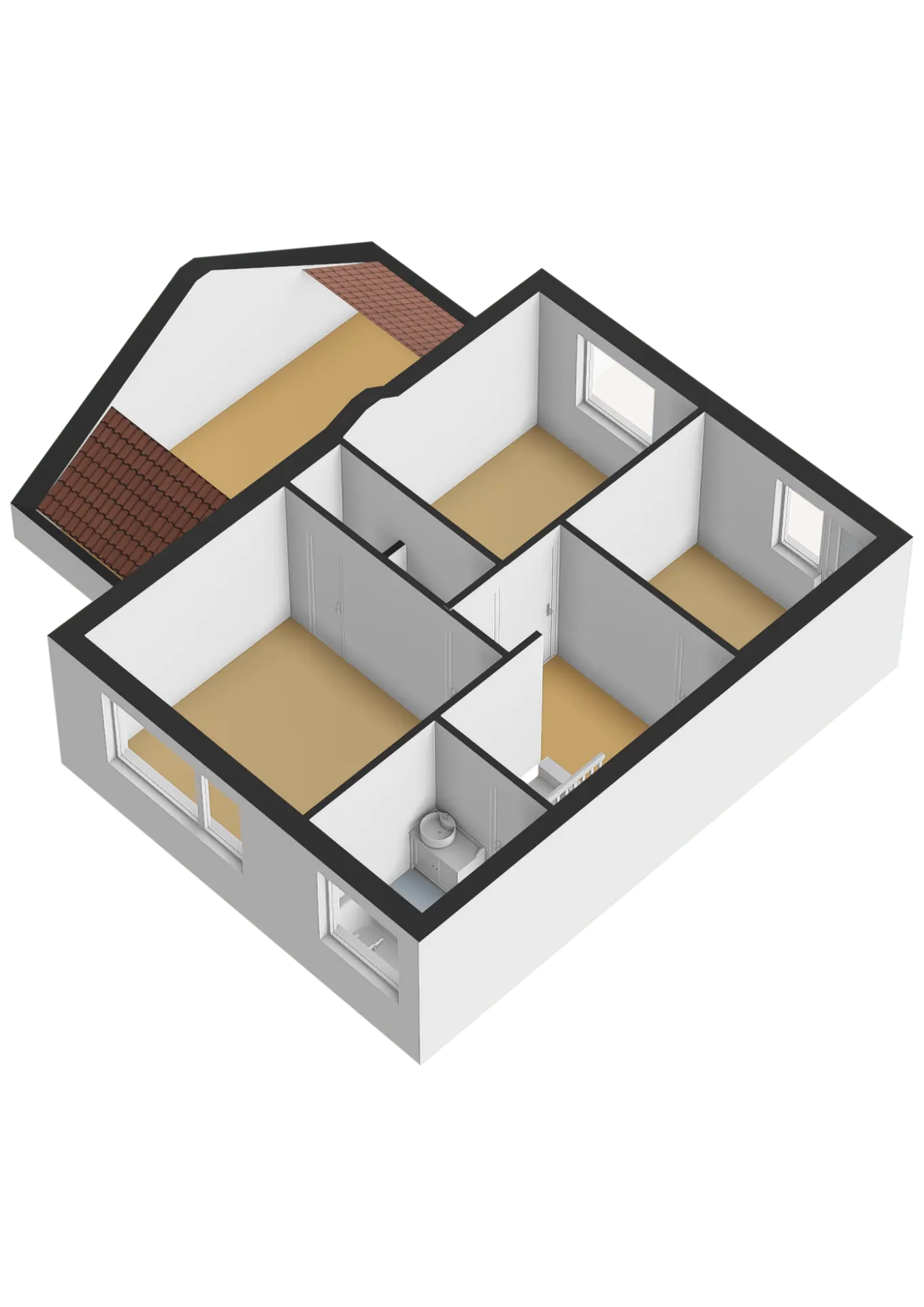 De verdieping heeft een nokverhoging met een dakkapel aan de voorzijde en aan de achterzijde.