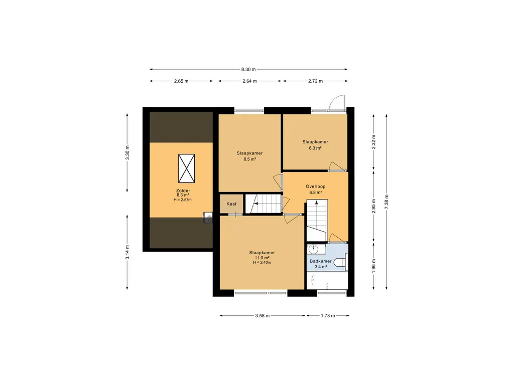 - Slaapkamer met een dakkapel aan de voorzijde en achterzijde en voorzien van rolluiken