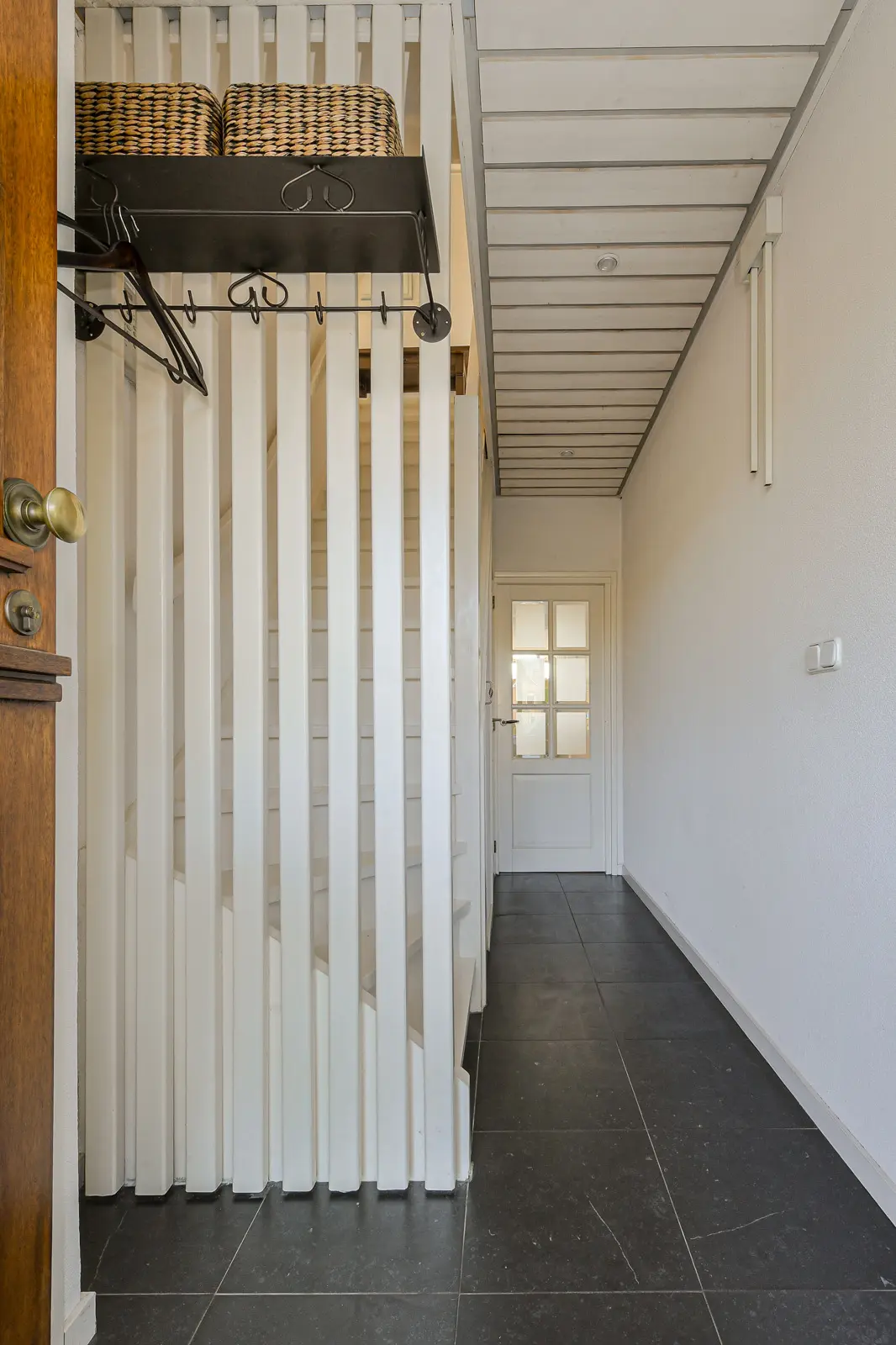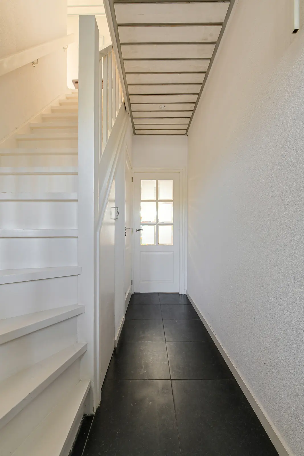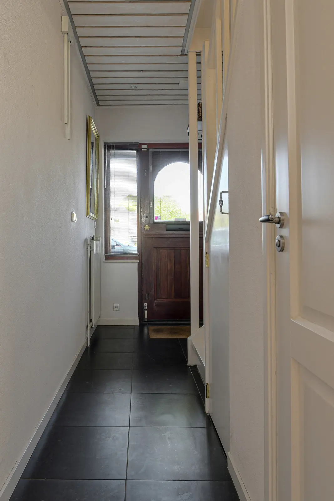 - Entree/hal met meterkast, trapopgang en trapkast. De hal is voorzien van een plavuizenvloer;