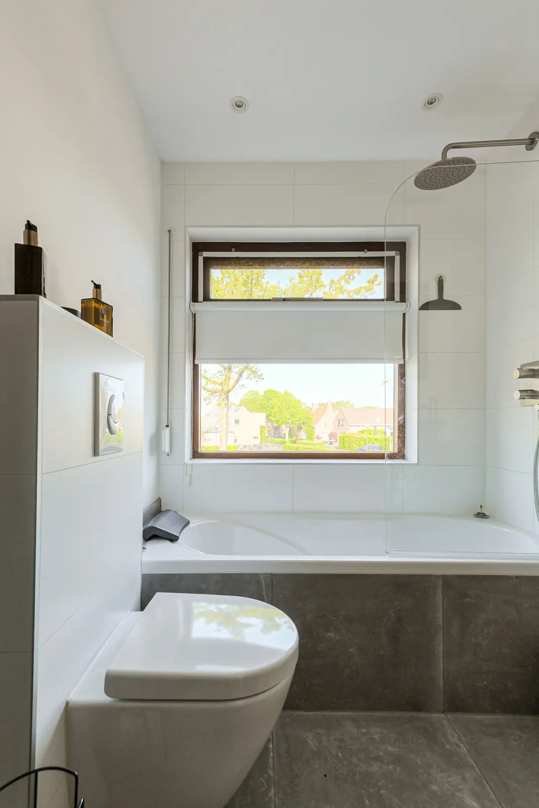 - Badkamer (2020) voorzien van een ligbad met douchescherm, hangend closet en een wastafelmeubel