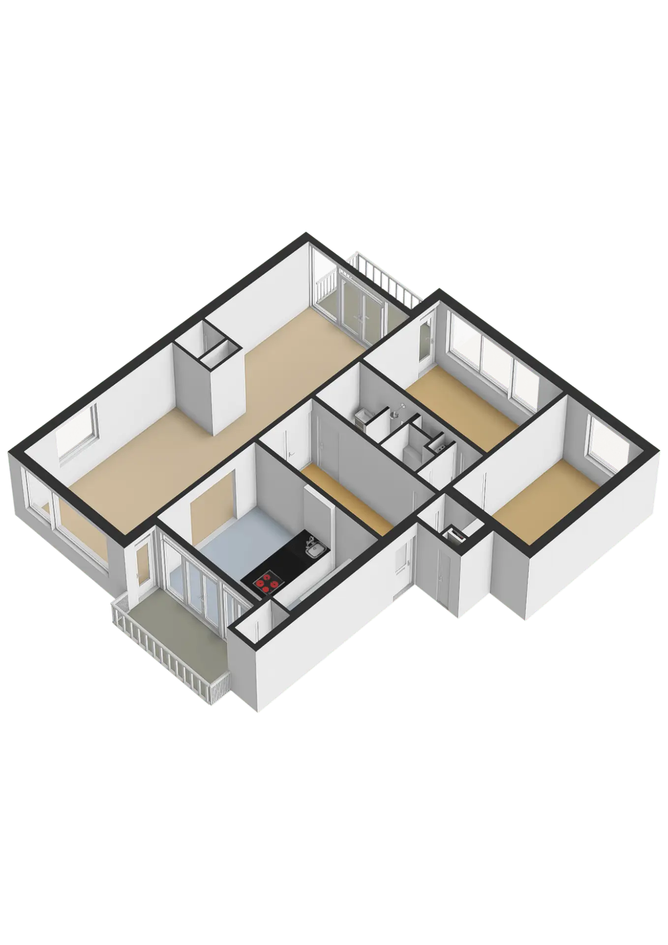 * Het appartement beschikt over twee balkons: één op het zuiden en één op het noorden.