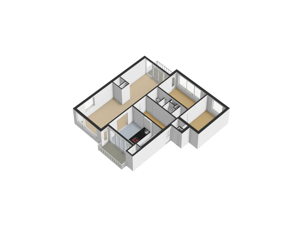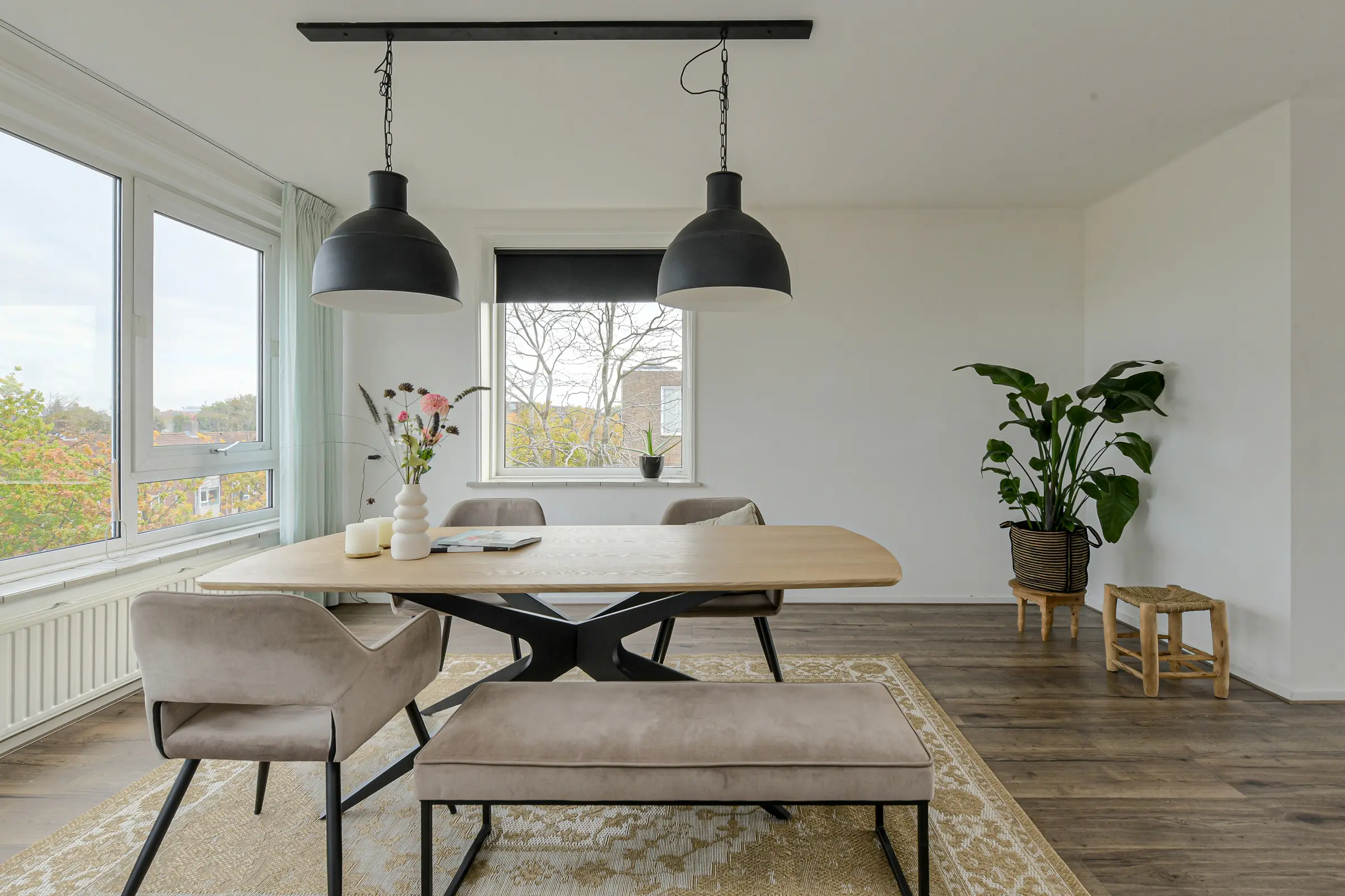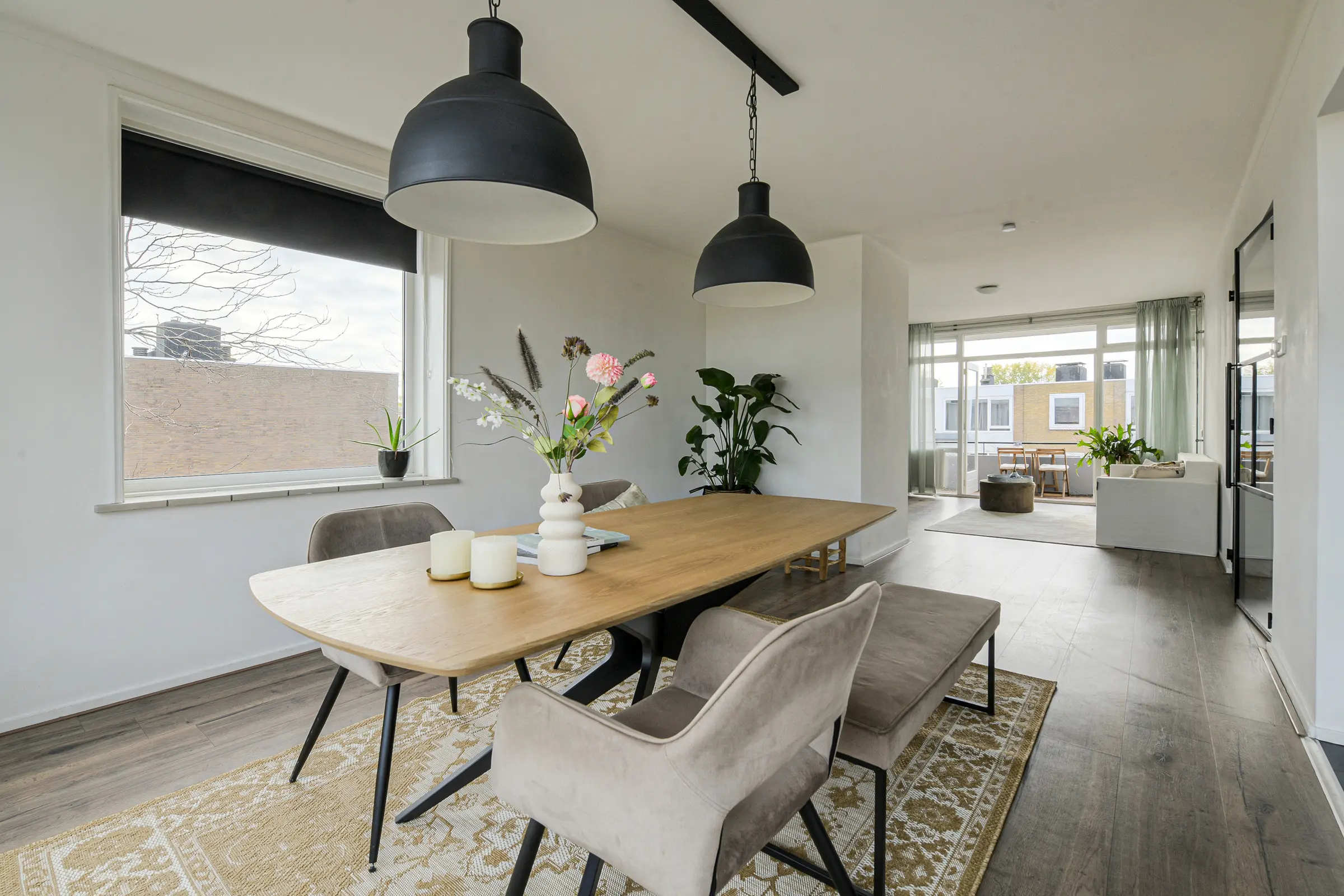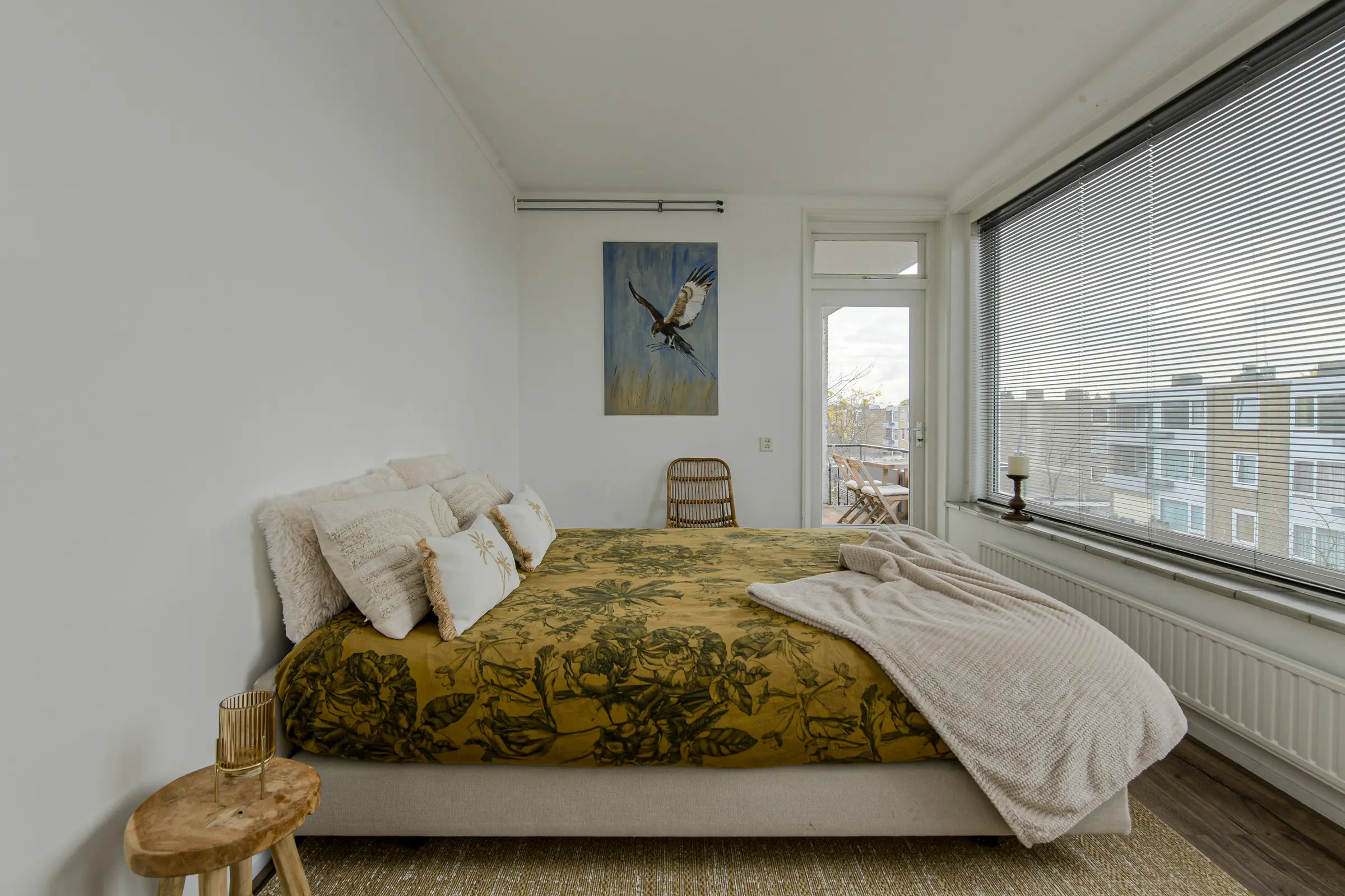 * Door het hele appartement (m.u.v. badkamer en keuken) ligt een doorlopende laminaatvloer, wat zorgt voor een rustige en ruimtelijke uitstraling.