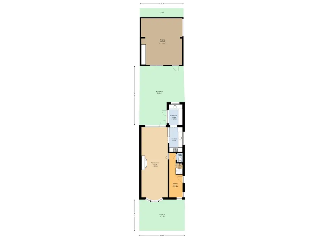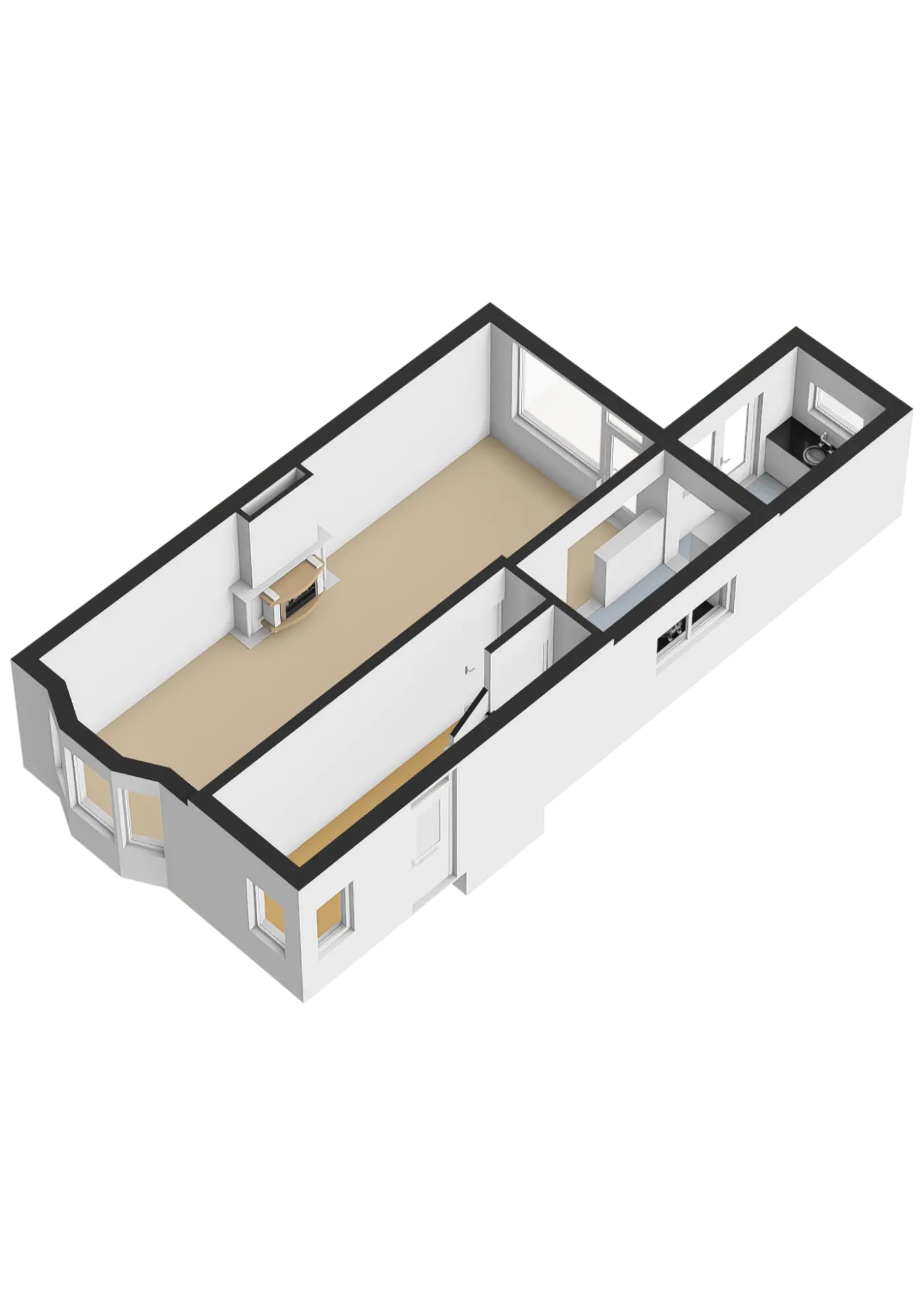 Voorzien van wasmachineaansluiting, afzuigkap en gootsteen. Hier heb je de mogelijkheid om deze ruimte te betrekken bij de keuken of als praktische wasruimte, extra bergruimte, eventueel werkruimte of speelkamer te creëren.