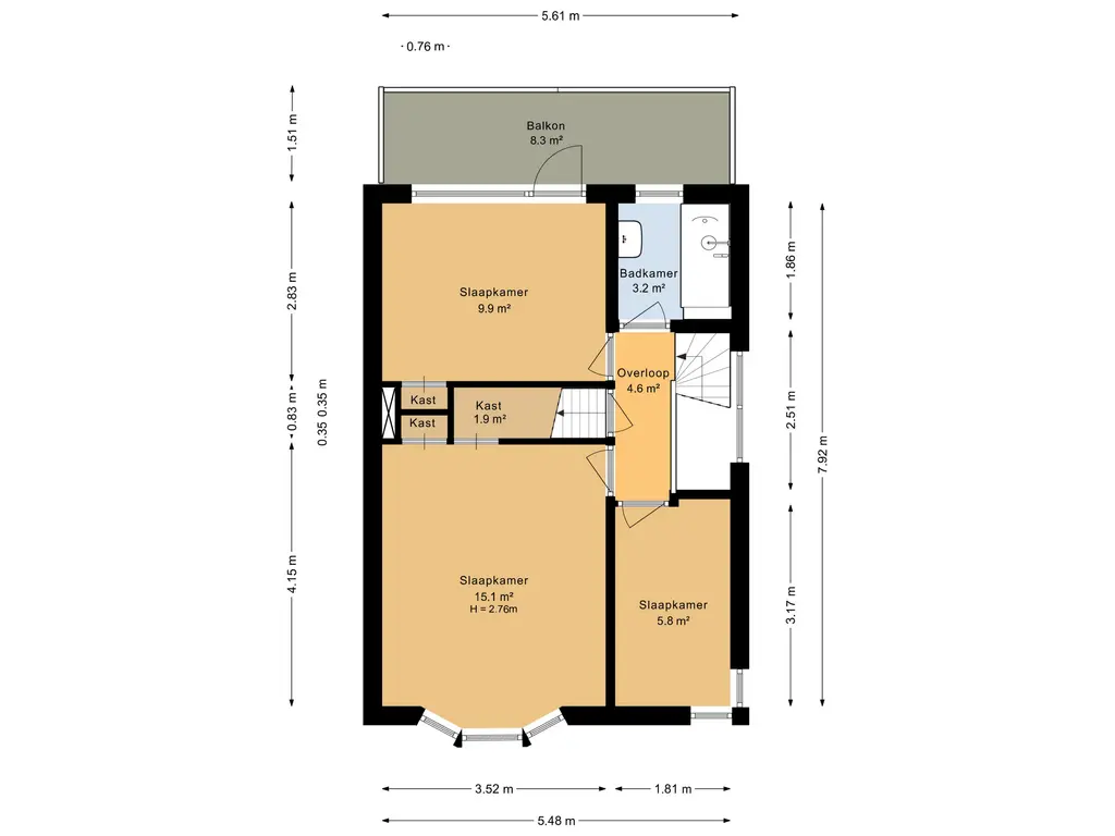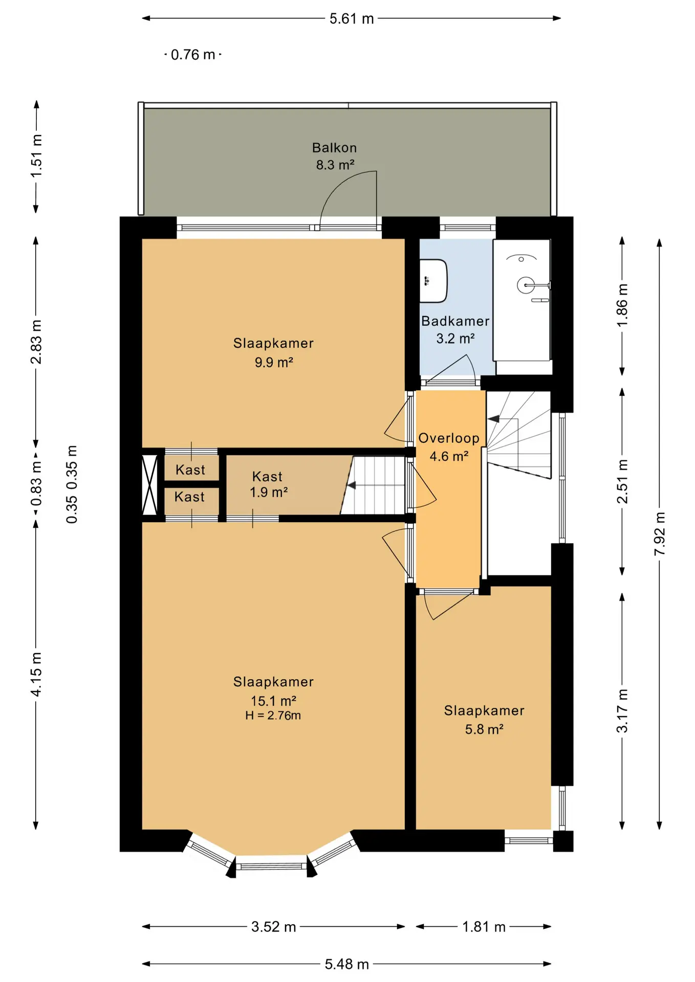 Met drie volwaardige slaapkamers biedt deze verdieping een uitstekende basis voor een gezin, maar leent zij zich ook uitstekend voor een combinatie van wonen en werken aan huis.