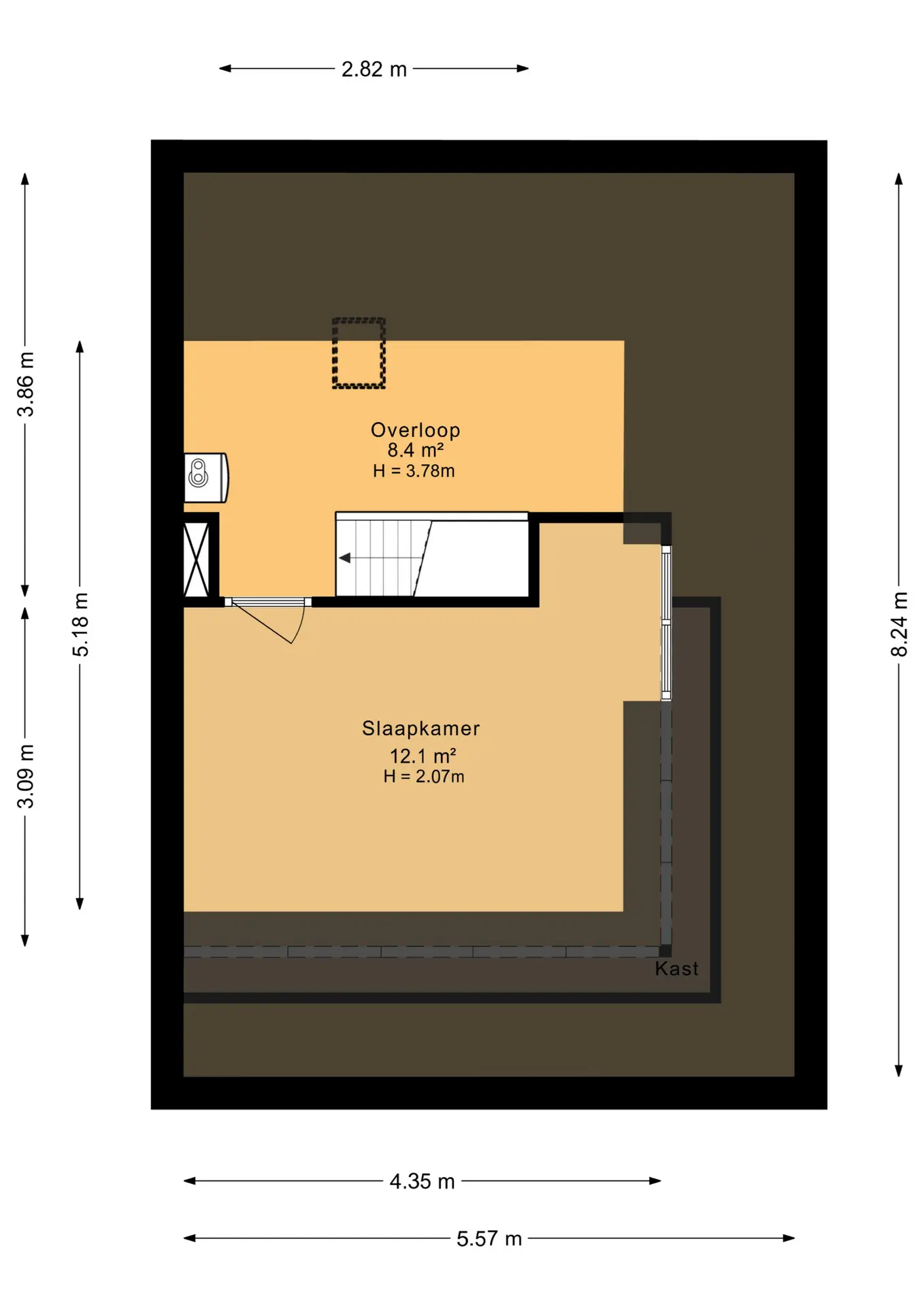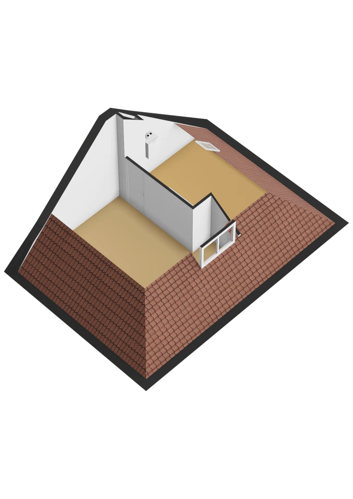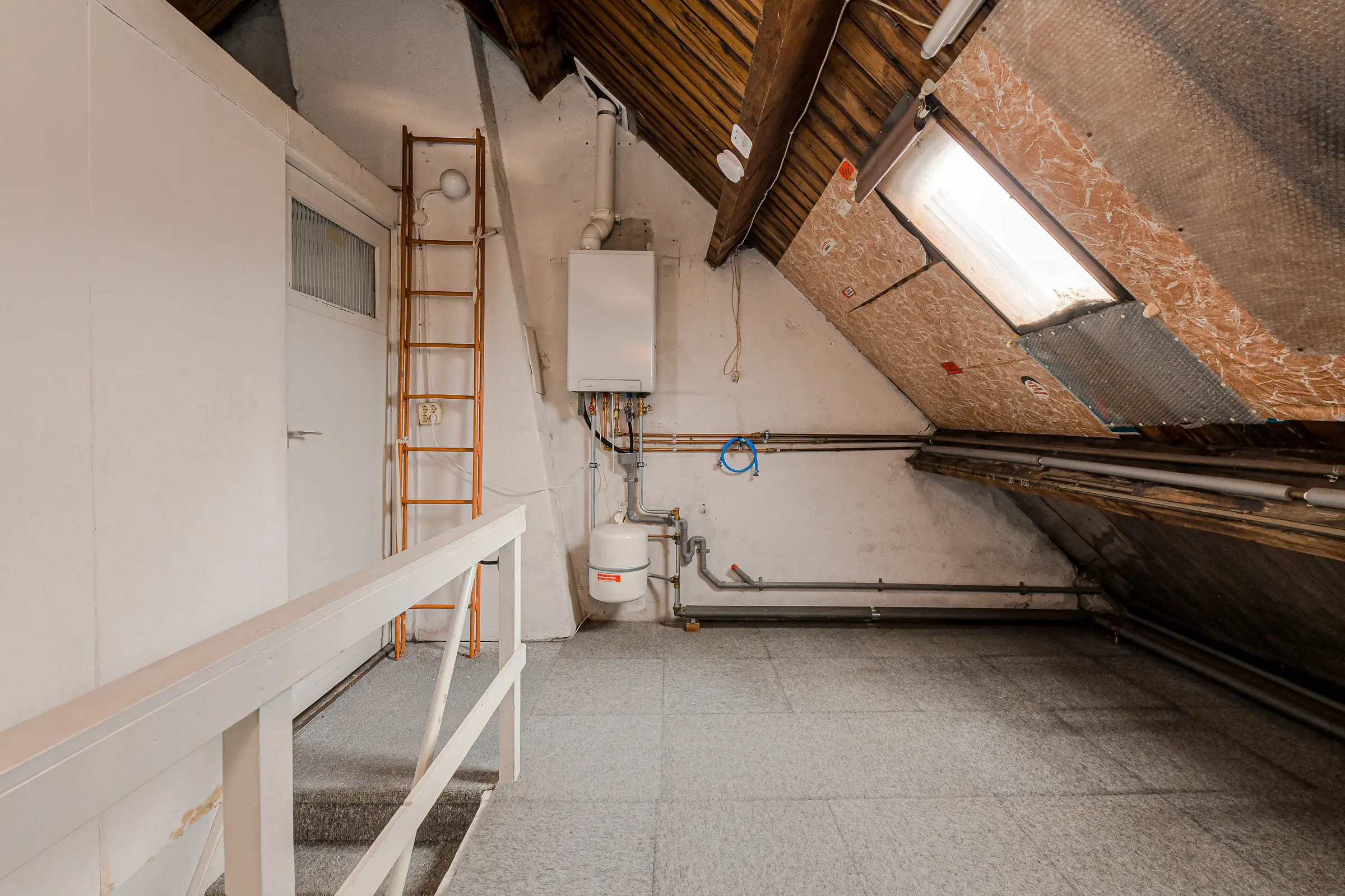 Zolderkamer met dakkapel en een open ruimte met opstelplaats voor de C.V.-ketel (2022).