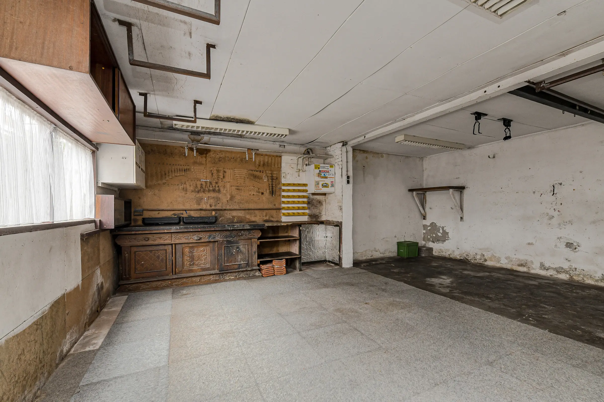 Extra brede garage met kanteldeur en volop mogelijkheden. Je kunt er een werkruimte of hobbyruimte realiseren of natuurlijk voor opslag, maar ook een praktijk- of kantoorruimte aan huis (onder voorbehoud van vergunning) behoort tot de mogelijkheden.