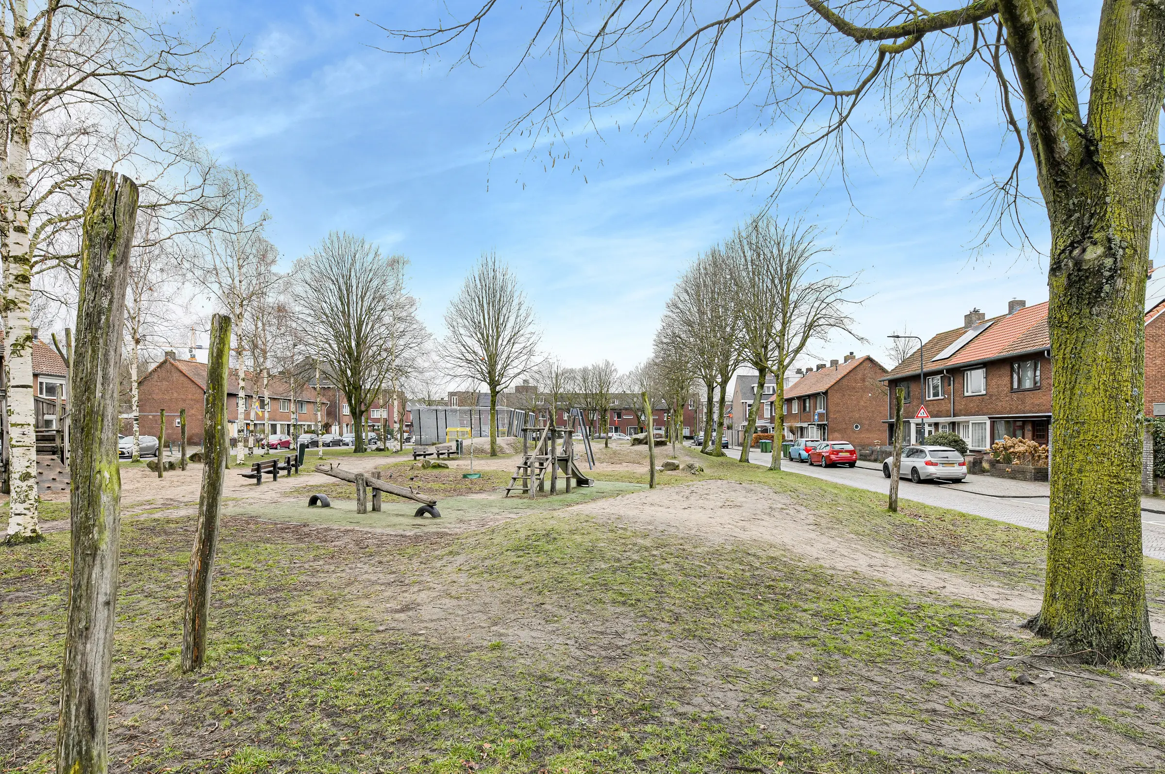 Vanuit het keukenraam geniet je van een vrij en open uitzicht over het plein en de speeltuin. Een prettige, groene setting zonder directe inkijk. Ideaal voor gezinnen: je kijkt zo uit op spelende kinderen terwijl je zelf comfortabel in de keuken staat.